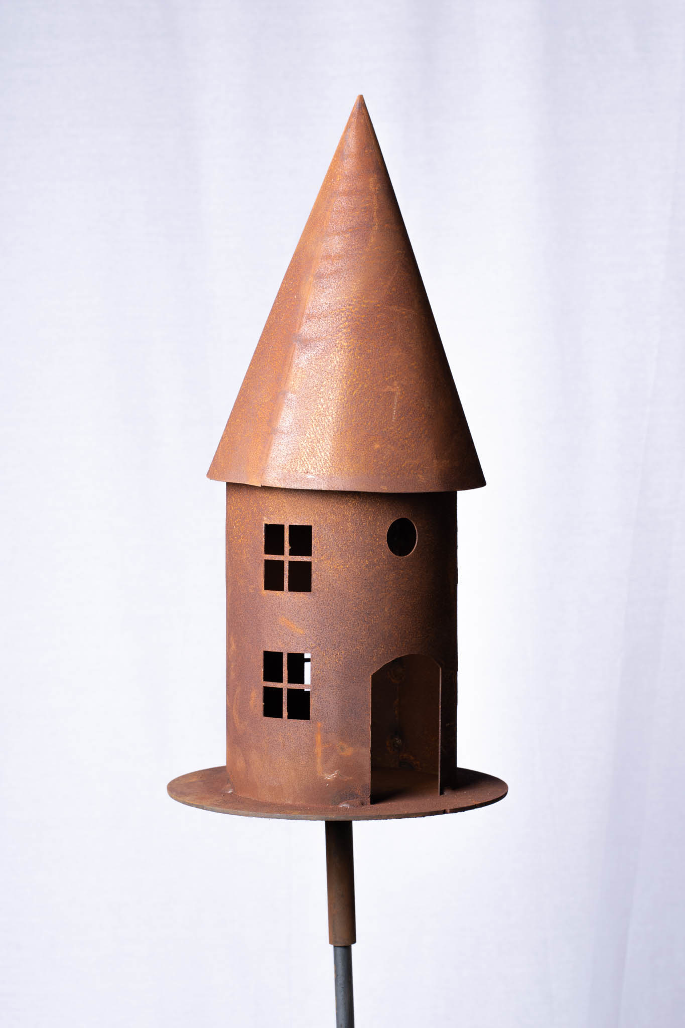 Ein zeitloses Stück Gartendekoration, das auch das ganze Jahr über die Blicke auf sich zieht, das ist dieses Modell Vogelfutterhaus aus unbehandeltem Metall. Dieser Futterautomat sieht mit Fenstern und Türen lustig aus. Wenn Sie ständig Vogelfutter in dieses Haus stellen, werden die Vögel das ganze Jahr über hierher strömen. Alles ist aus 2 mm dickem, unbehandeltem Eisen gefertigt, was ihm eine schöne und zeitlose braune Farbe verleiht. Auch attraktiv, wenn im Dunkeln eine Kerze im Futterhaus angezündet wird. Die Gesamthöhe von Futterhaus und Stall beträgt 180 cm, ein Stück davon muss in den Boden gesteckt werden.
