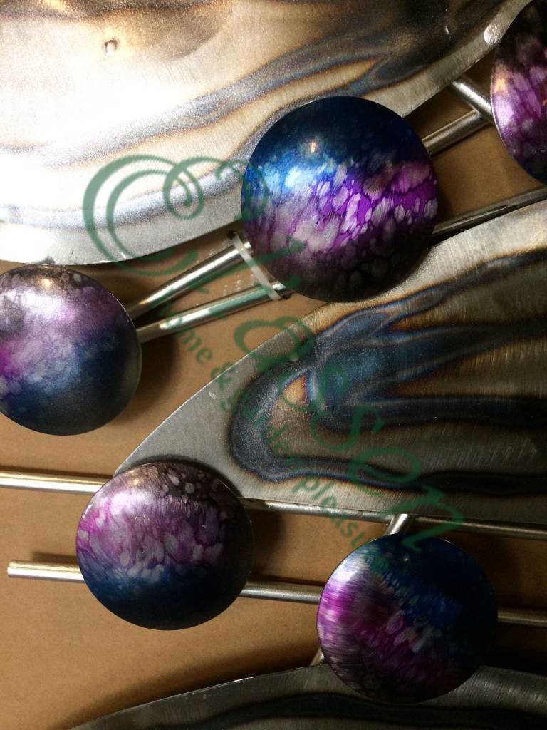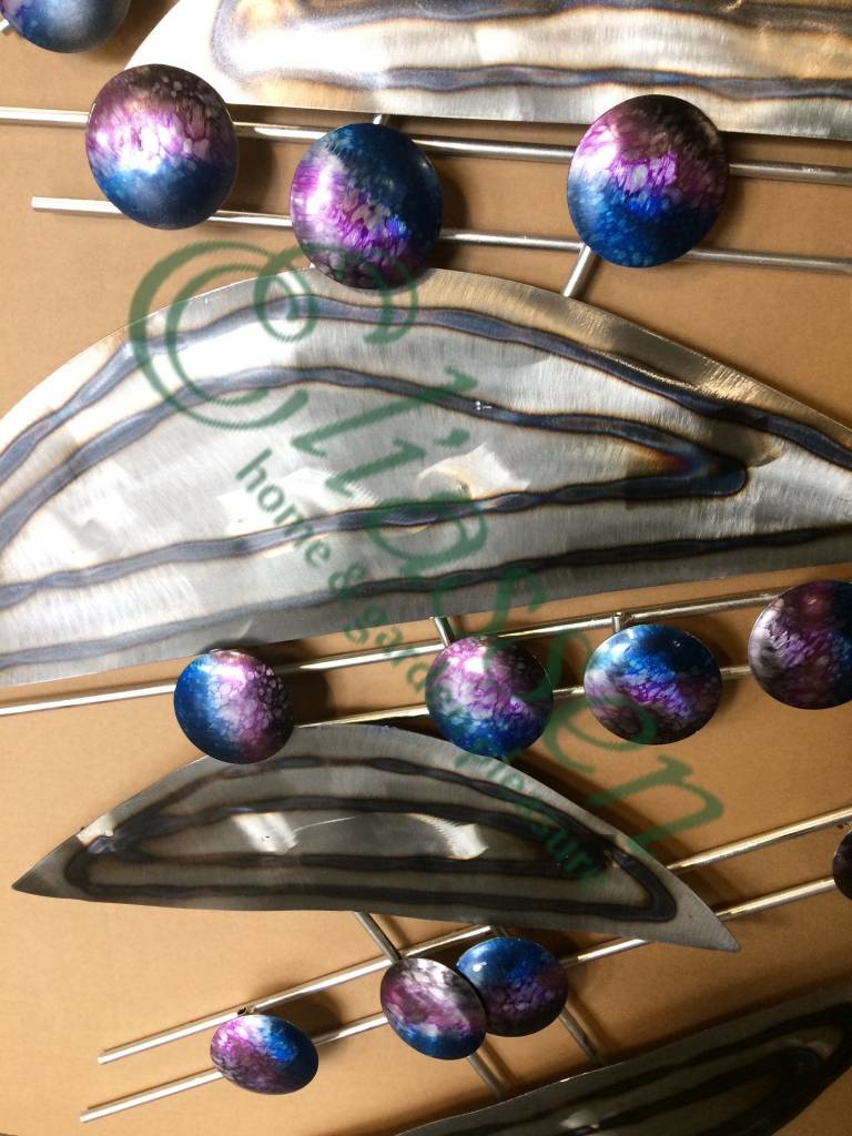 Diese 3-dimensionale Wanddekoration aus Metall verschönert jedes moderne Interieur oder jeden Arbeitsplatz. Dieses Modell mit blauen Kreisen ist eine attraktive und zeitlose Wanddekoration und ein echter Blickfang.