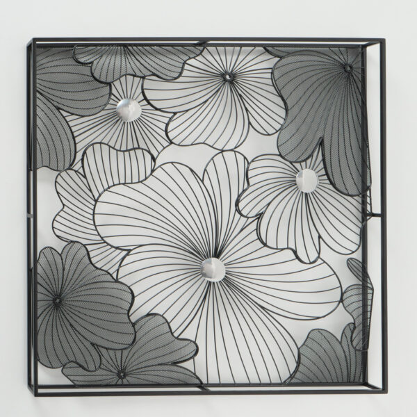 Vollständig handgefertigte Wanddekoration aus Metall mit einem Blumenmotiv. Eine schöne Ergänzung für Ihr Haus oder draußen unter einer Veranda. Da es handbemalt und von Hand gefertigt ist, ist jedes Exemplar ein Unikat und die Form oder Farbe kann leicht vom Foto abweichen.