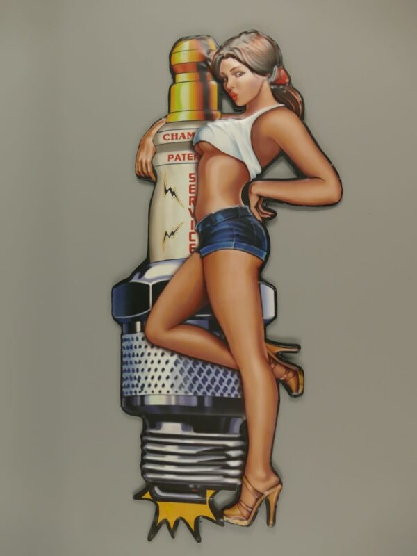 Diese Wanddekoration besteht aus Blech mit einer gespritzten Oberfläche, die mit einem Transfer überzogen ist und oft einen gewellten Rand aufweist.