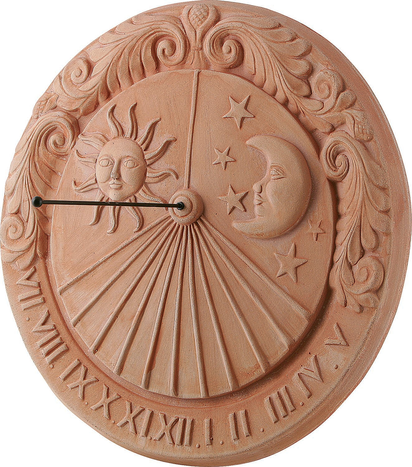 Wand-Sonnenuhr Terracotta Toskanische Sonne und Mond 43cm