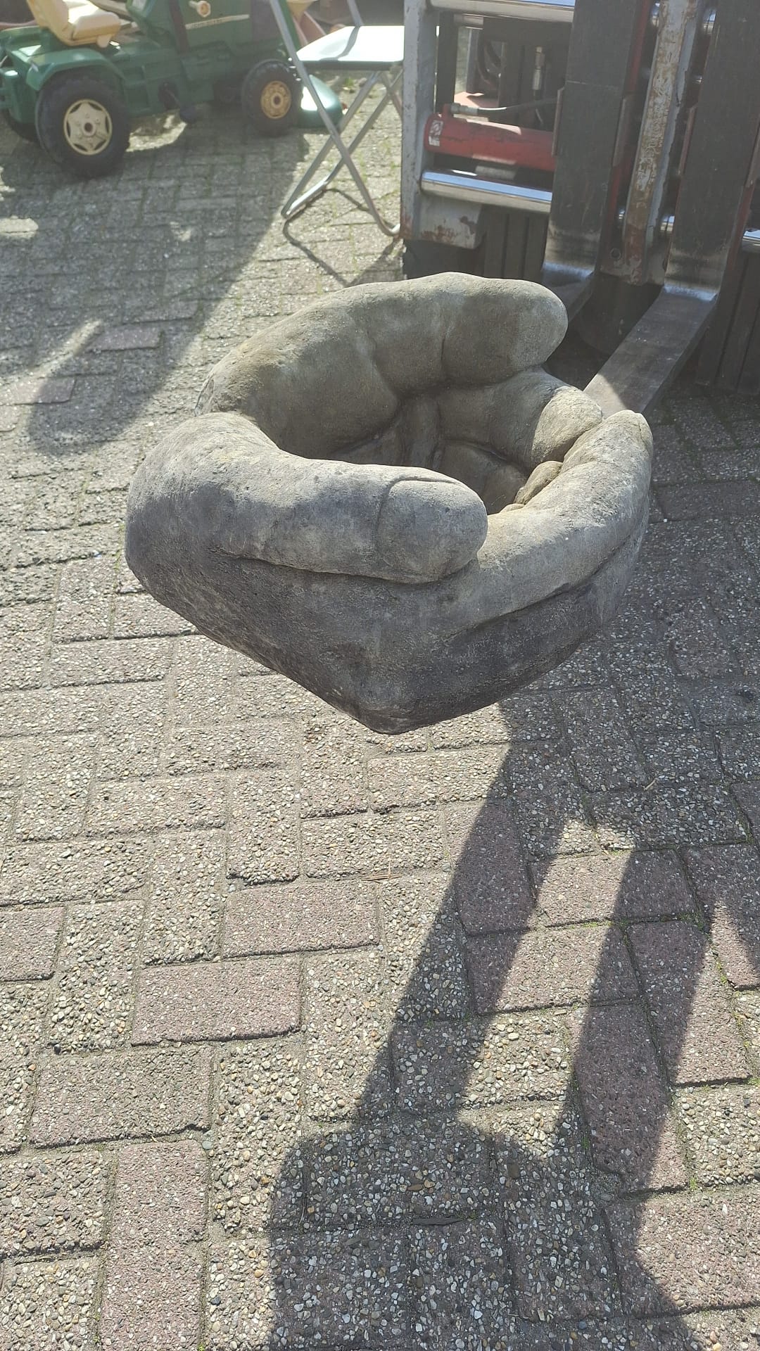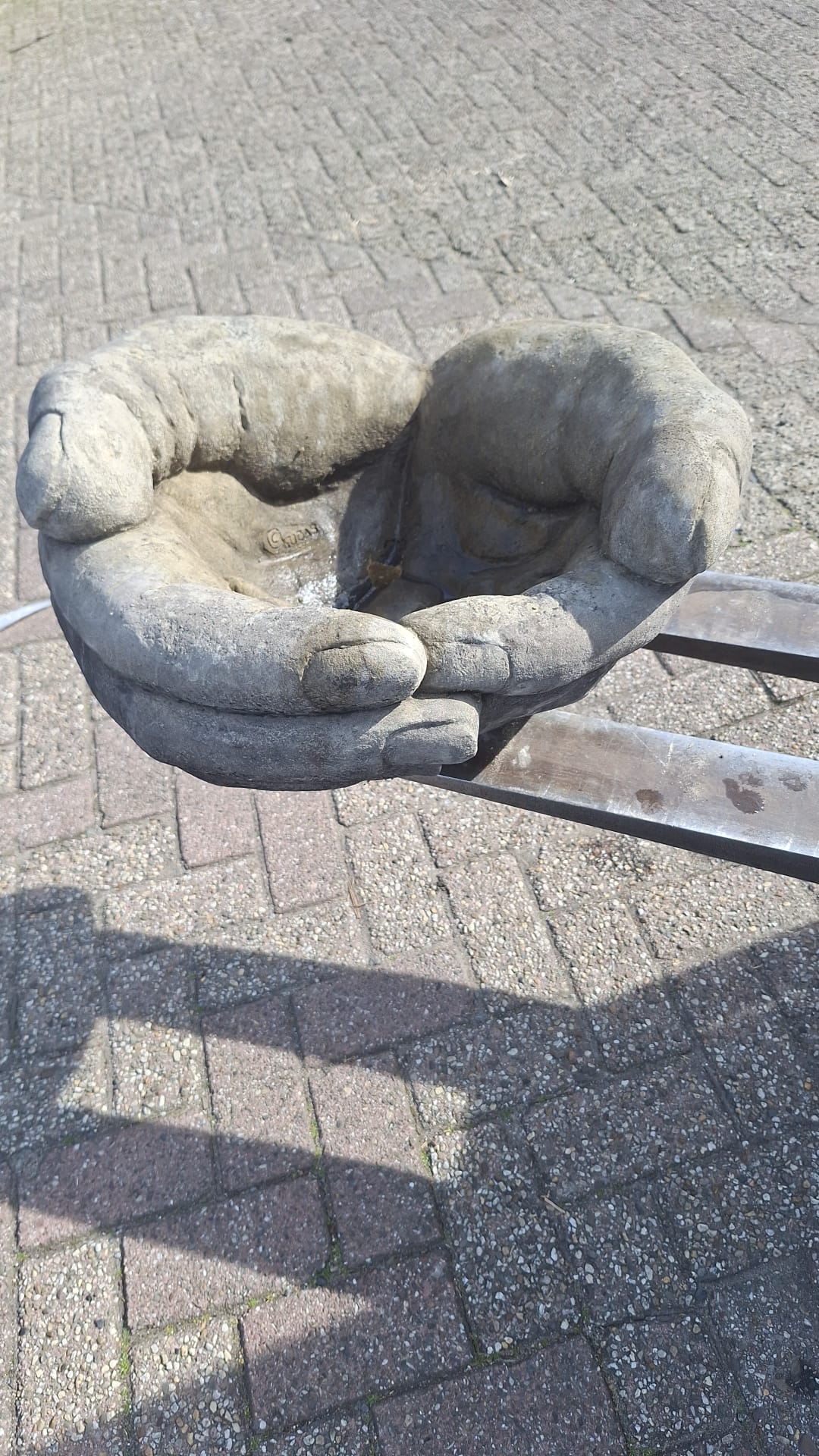 Wenn Sie auf der Suche nach einem bedeutungsvollen und heiteren Element für Ihren Garten sind, ist dieses besondere Wasserornament in Form von zwei ruhenden, gefalteten Händen eine wunderbare Wahl. Mit 54 cm Breite und 33 cm Höhe ist dies ein kompaktes, aber ausdrucksstarkes Kunstwerk für fast jeden Außenbereich. Das Ornament wiegt 80 Kilo und ist komplett aus massivem Beton gefertigt, was für robuste Qualität, Stabilität und Langlebigkeit sorgt. Wie Sie an den feinen Details erkennen können, hat der Beton eine authentische, natürliche Textur und einen hellgrauen Farbton, der sich mühelos in eine grüne Gartenumgebung oder auf eine attraktive Terrasse einfügt. Das Wasser sammelt sich auf beruhigende Weise in den Palmen, was nicht nur Sicherheit symbolisiert, sondern auch ein entspannendes und subtiles Plätschern in Ihrem Garten verbreitet. Machen wir es uns gemütlich! Wasserornamente gehören seit vielen Jahren zu unseren absoluten Spezialitäten. Sie sind daher herzlich eingeladen, unseren Ausstellungsraum zu besuchen, um dieses symbolische Prunkstück und den Rest unseres breiten Sortiments selbst zu erleben. Setzen Sie sich bitte im Voraus mit uns in Verbindung, um zu erfahren, ob dieses bestimmte Modell derzeit auf Lager ist, damit wir Enttäuschungen bei Ihrem Besuch vermeiden können.