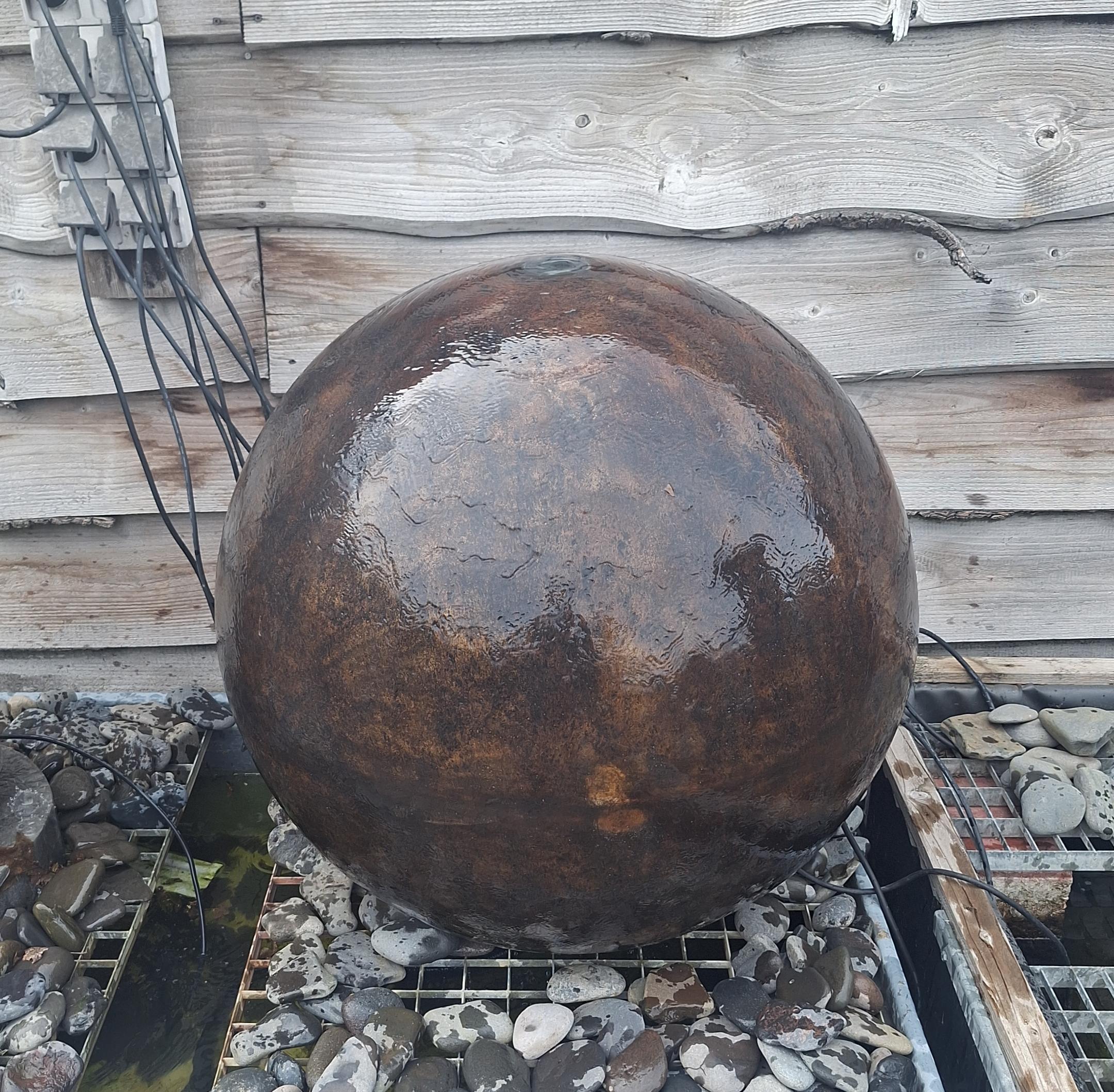 Diese Wasserkugel hat eine braune/kleine rostige Farbe und ist eine echte Zierde in Ihrem Garten oder in Ihrem Geschäft. Das Wasser fließt auf subtile Weise über die Birne, Sie werden kaum ein Wassergeräusch hören. Dieser Sprudler garantiert einen starken Wasserfluss.