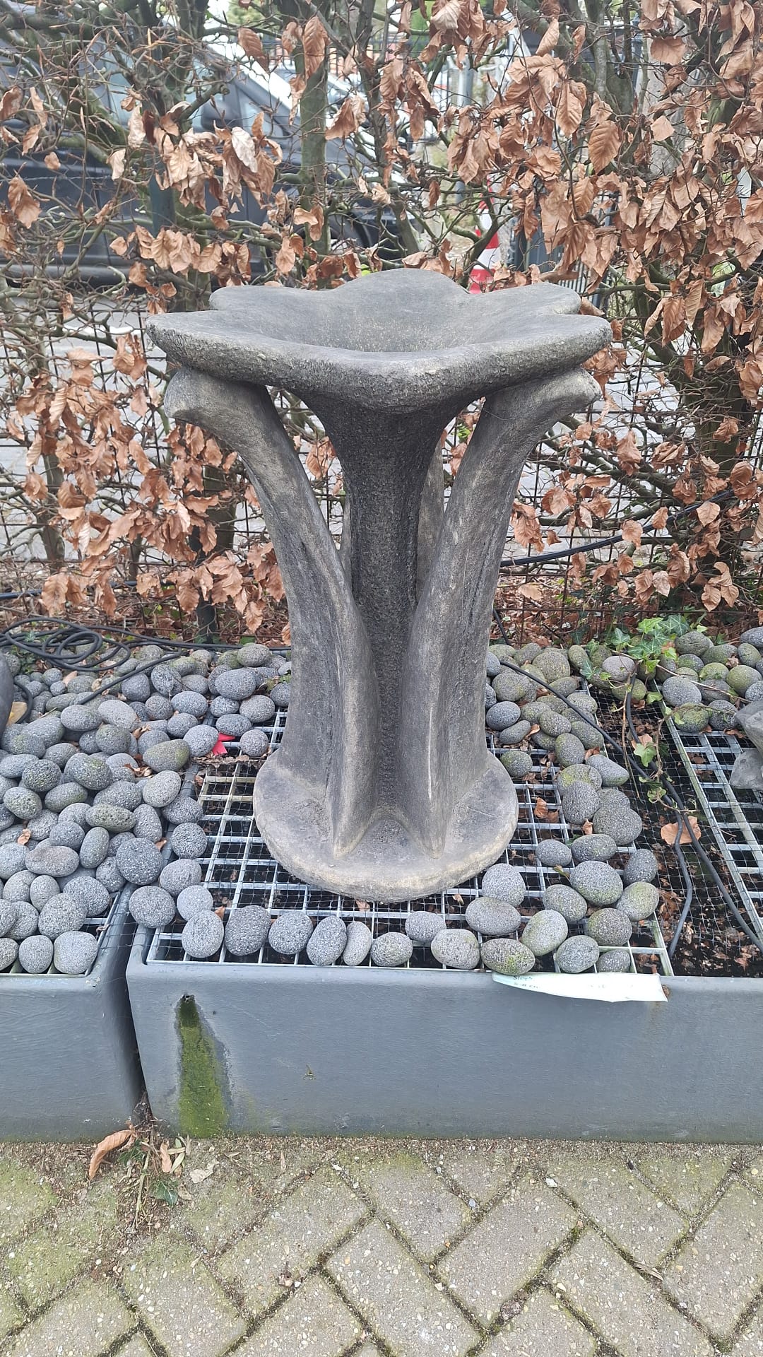 Bringen Sie ein anmutiges und natürliches Element in Ihren Außenbereich mit diesem massiven Wasserornament aus Beton in Form einer eleganten Blume. Dieses graue, stimmungsvolle Prunkstück ist 77 Zentimeter hoch, hat einen Durchmesser von 54 Zentimetern und steht fest auf einem 43 Zentimeter hohen Sockel. Das beruhigende, plätschernde Wasser fließt wunderschön von der Blume herab und schafft ein entspannendes Ambiente in jedem Garten oder auf jeder Terrasse.