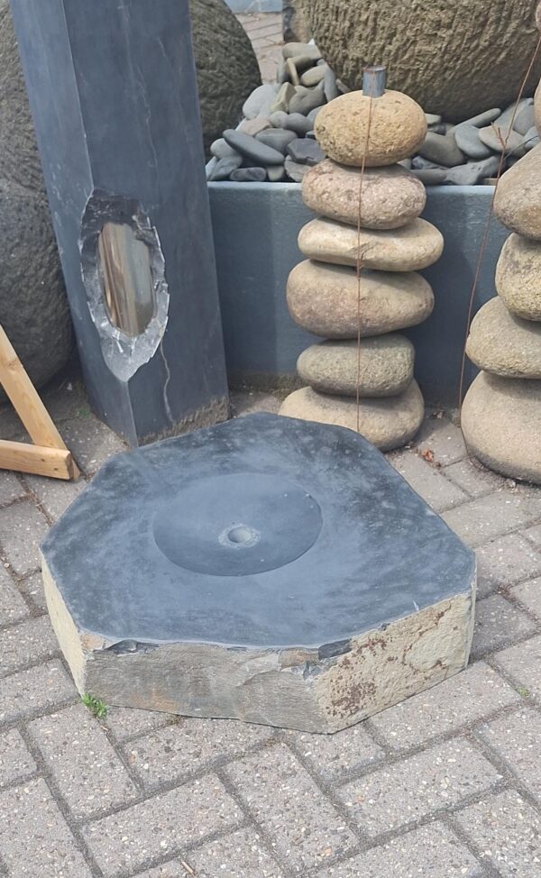 Diese Wasserplattform bietet das Beste aus beiden Welten. An der Oberseite poliert und an den Seiten im Originalzustand erhalten. Sind Sie auf der Suche nach einem natürlichen Wasserornament oder Springbrunnen? Bei diesem Ornament handelt es sich um ein echtes Naturprodukt aus Basaltstein, bei dem die Schönheit des Steintyps unberührt geblieben ist.