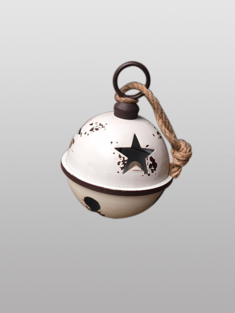 Wunderschöne handgefertigte weiße Metallkugel mit einer Glocke im Inneren.