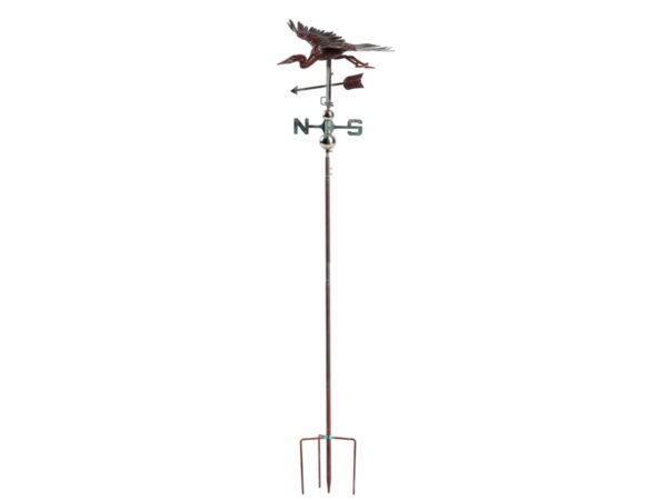 Diese braune Wetterfahne mit einem großen fliegenden Reiher ist in jedem Garten eine fröhliche Bereicherung.