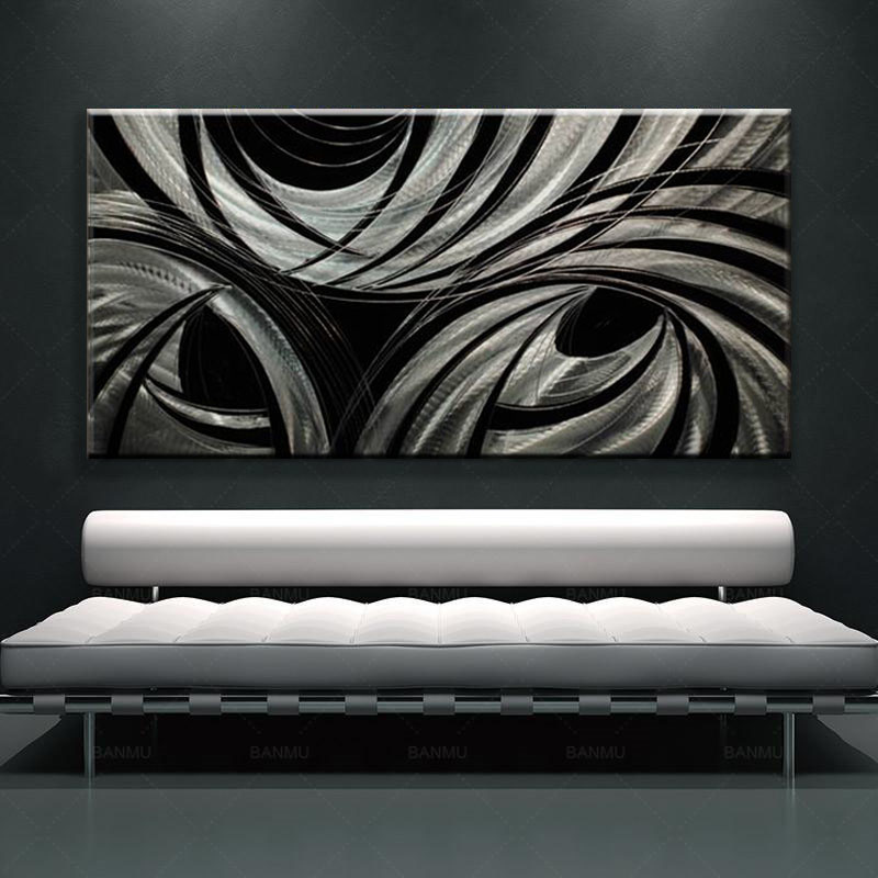 Möchten Sie sich ein besonderes XXL-Gemälde an die Wand hängen, mit schwarz-grauen Farben, mit einem ganz einzigartigen Look? Dann lassen Sie sich dieses sehr moderne abstrakte großformatige Aluminiumgemälde der exklusiven Marke ArtEl nicht entgehen. Vollständig von Hand gefertigt. Durch viel manuelles Schleifen und Polieren eines Aluminiumblechs in Kombination mit den gewählten leuchtenden Farben entsteht ein modernes und zeitgemäßes Stück Wanddekoration für Ihr Arbeits- und Wohnumfeld. Dieses Gemälde ist fast 3 cm dick, die Rückseite ist wunderschön mit schwarzem Velours verarbeitet und mit Haken versehen.