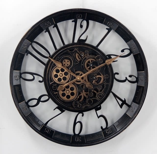 Zahnraduhr rund antik schwarz/gold 55cm Jakarta
