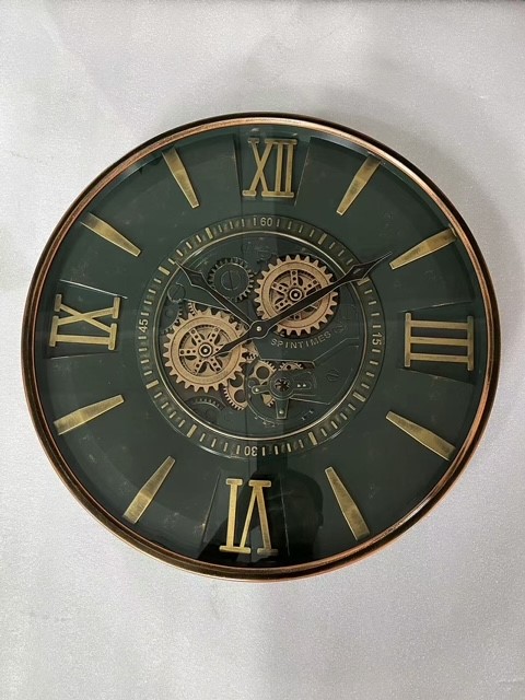 Mit dieser schönen runden grün/braunen Wanduhr mit beweglichen Teilen wird es eine Freude sein, nachzusehen, wie spät es jetzt ist. Diese sehr hübsche Uhr hat einen Stahlrahmen in Nickelfarbe mit dezenten Ziffern.