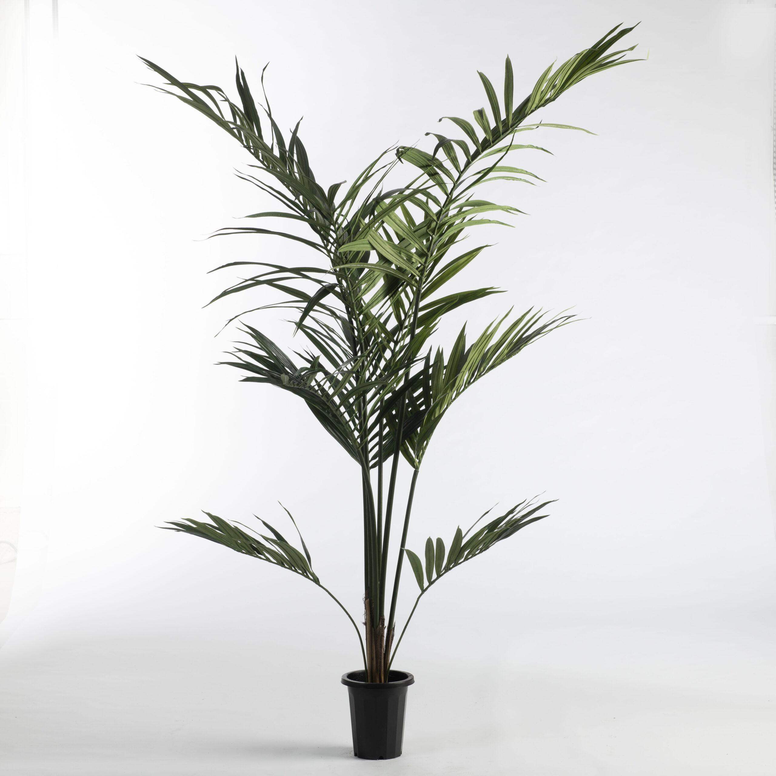 This true-to-nature model Kentia palm with tall stems and many long leaves is made from the finest recycled plastic species, and stands well on its own because of the pot in which the plant stands. This 180cm palm fills empty spaces very quickly due to its tall stems and many leaves. Combined with other silk plants, together in 1 large pot you can make a beautiful plant arrangement that you will not have to worry about.