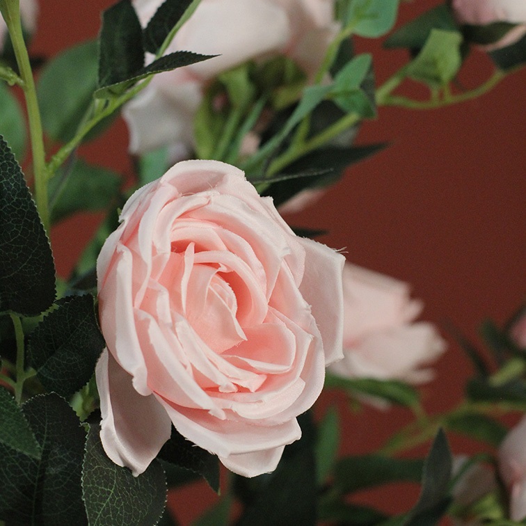 This lifelike model rose with small leaves and blooming roses is made of the finest recycled plastic types, and stands well on its own because of the pot in which the plant is placed. This large rose fills empty spaces very quickly because of the height of 120 cm and many small leaves. Combined with other silk plants, together in 1 large pot you can make a beautiful plant arrangement, which you no longer have to worry about.