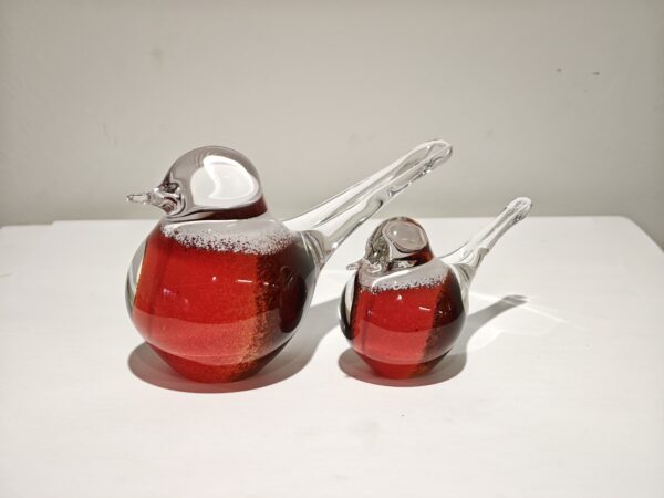 Bird set glass red/black/white 12 and 19cm