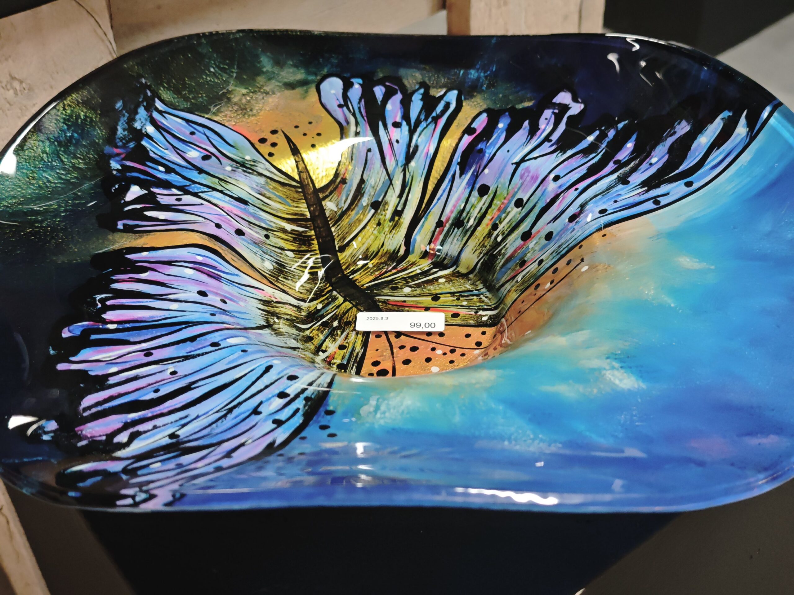 This beautiful model from the series Giulia glassware with vases and bowls is in many warm colors and with a beautiful, large butterfly a true decoration for your home.