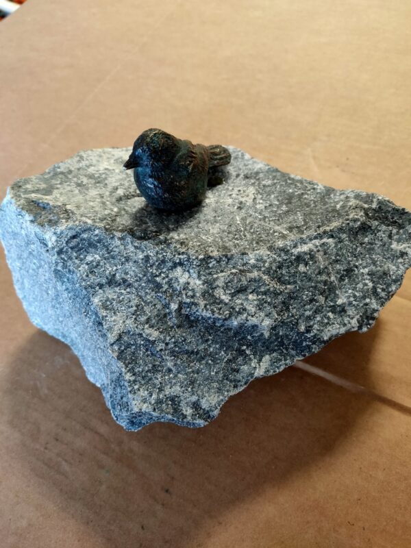 Beautiful figurine of a sparrow made of aluminum, on a chunk of granite from the black forest. Because this is a natural product, the shape and color always differs from the photo.