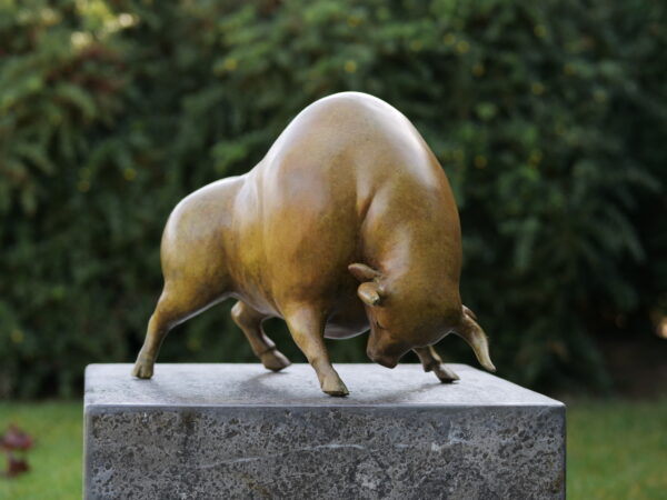 Beautiful statue of a green hot platinum bull made of high quality bronze with a minimum copper content of 75% ensuring a very long life.
