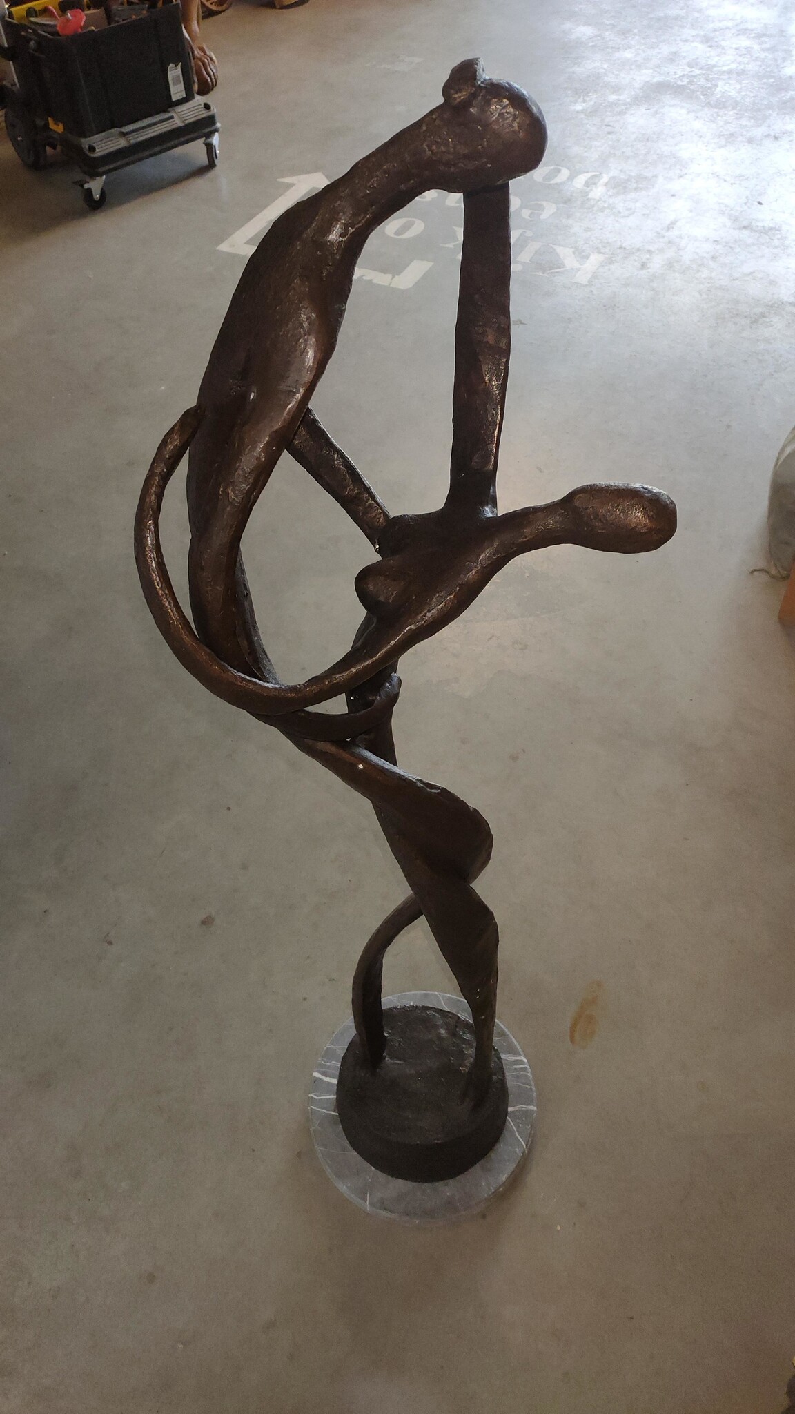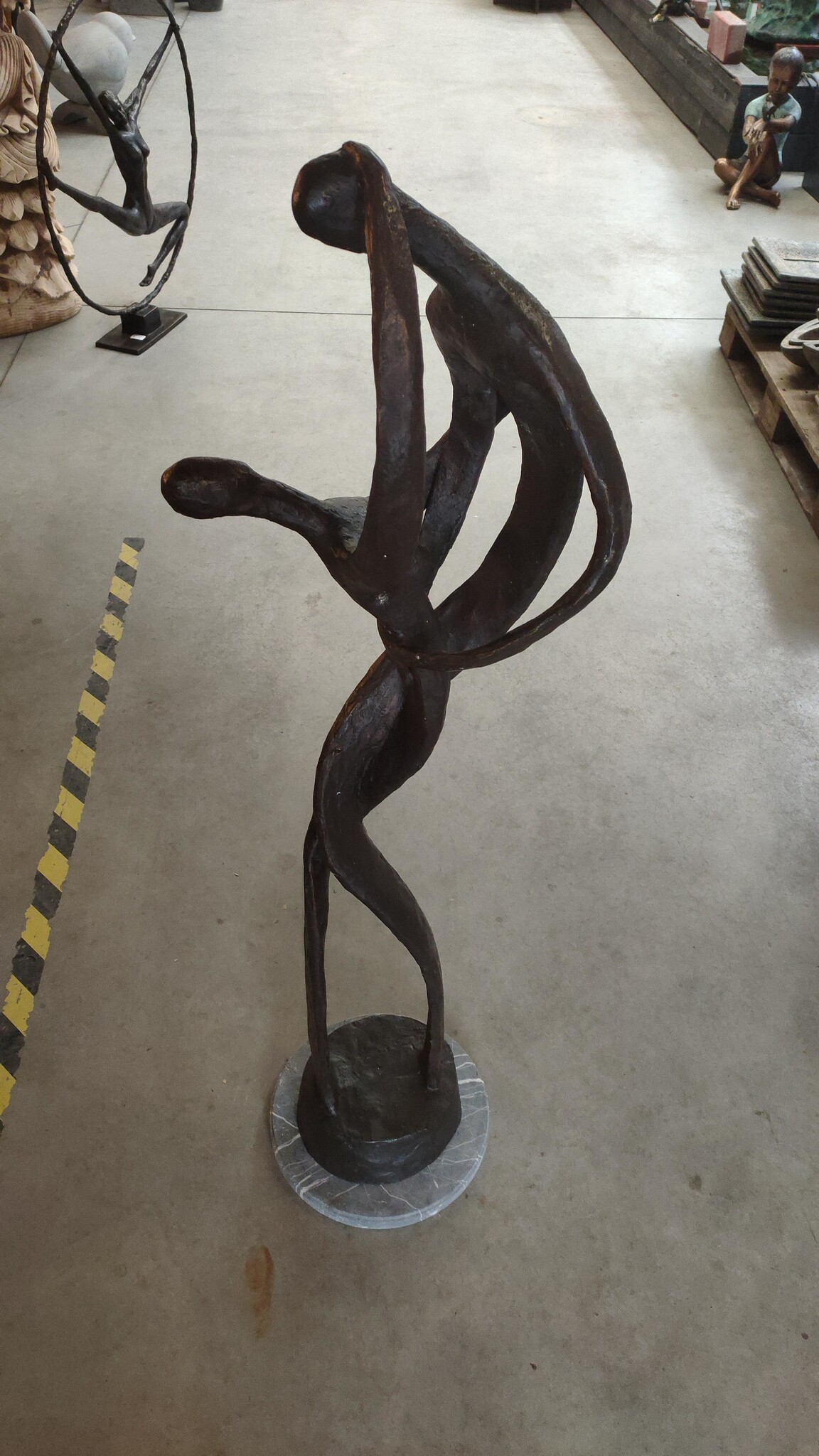 Beautiful statue of a modern / abstract dance couple made of real bronze. The bronze of this statue has a guaranteed copper content of 75%, which greatly benefits the lifespan and appearance.
