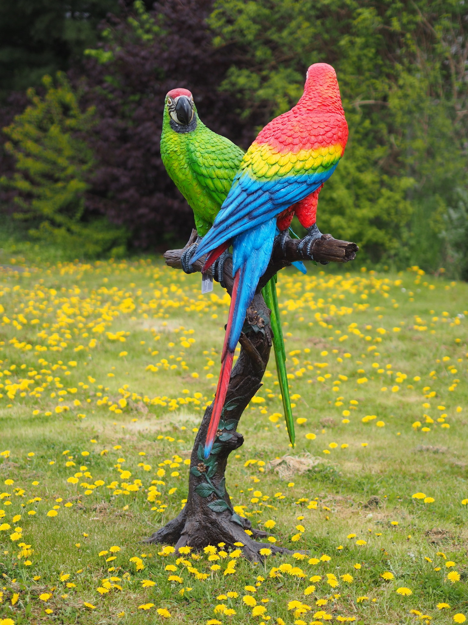 A an asset in your garden, but of course also indoors or in or near your business, these stunningly beautiful large parrots on a tree stump, made entirely of bronze. The colors of the parrots are burned into the bronze. The bronze used for this sculpture has a minimum copper content of 75%, which ensures the prevention of oxidation or other foreign spots.