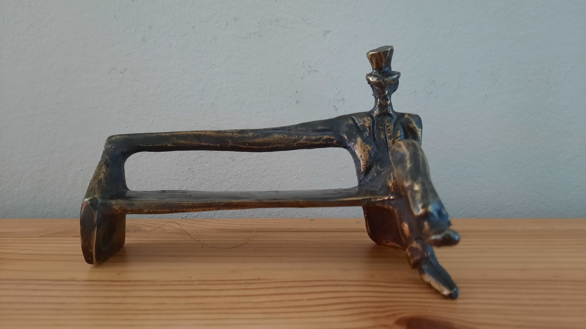 Bronze sculpture Man with hat on bench