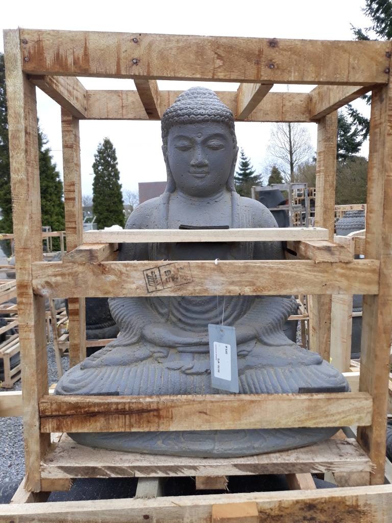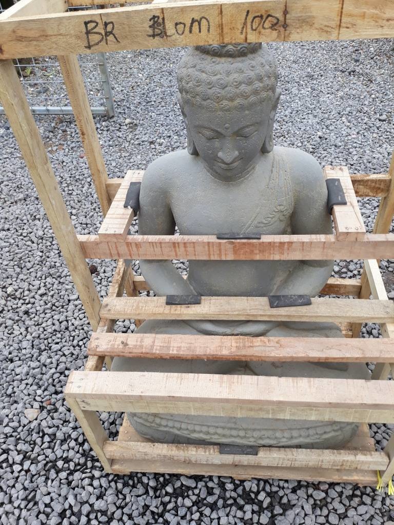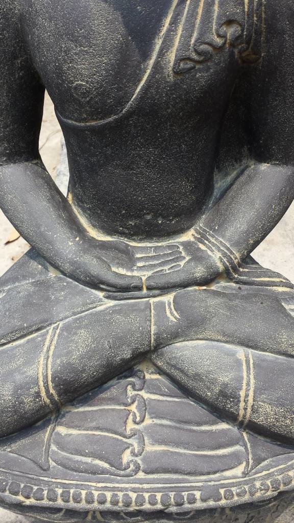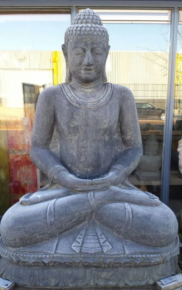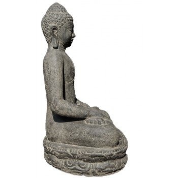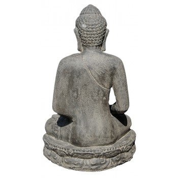 Statues from this series are all made of high quality cast stone with a very high cement content, so all these statues can withstand all weather conditions with ease. The color is black/brown and may always vary slightly from the photo because all of this series is handmade. This sitting, meditating Buddha on lotus flower is available in 6 sizes, up to 200cm high !!!