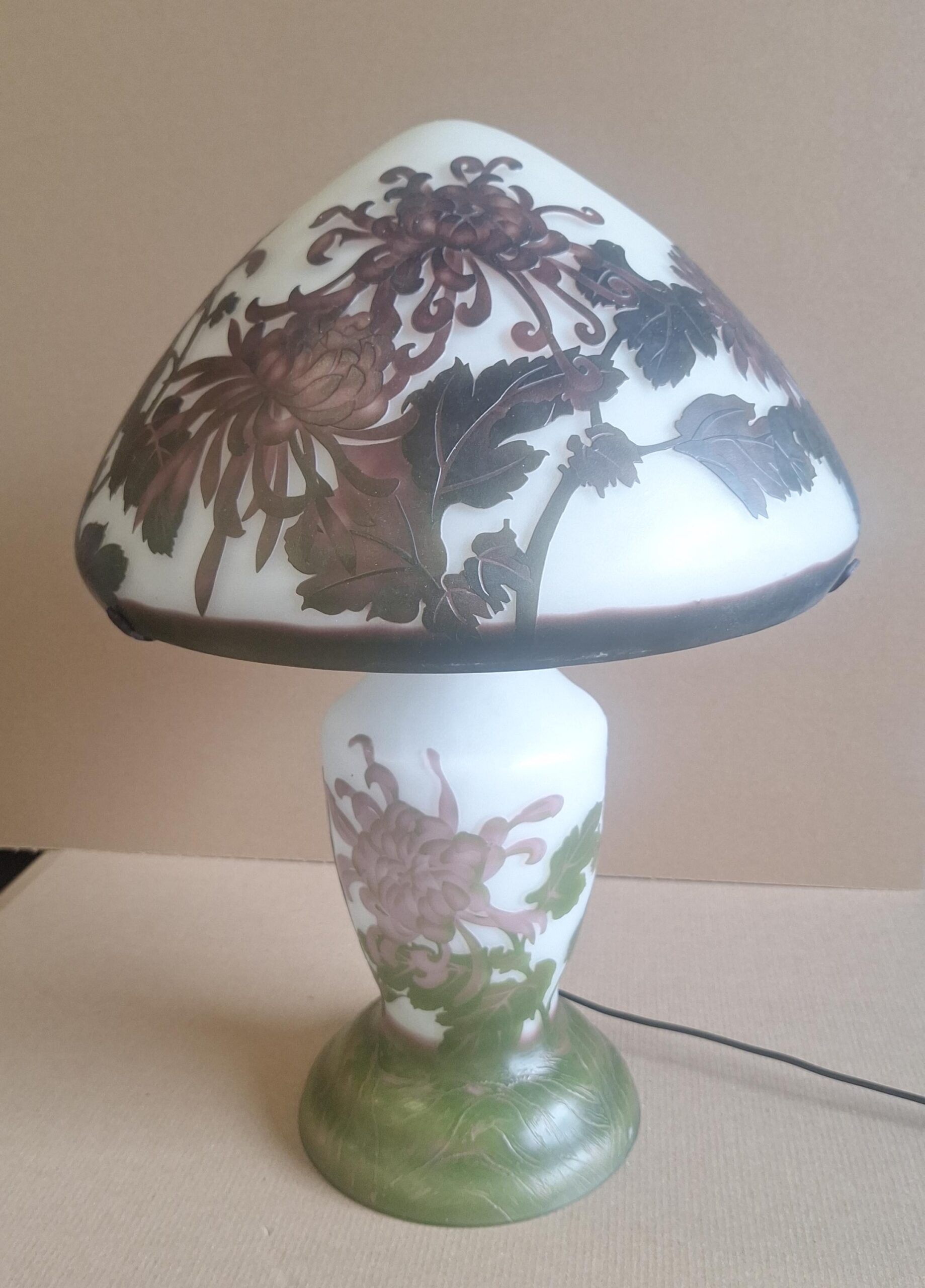 Cameo glass lamp by Emile Gallé Chrysanthemum 49cm