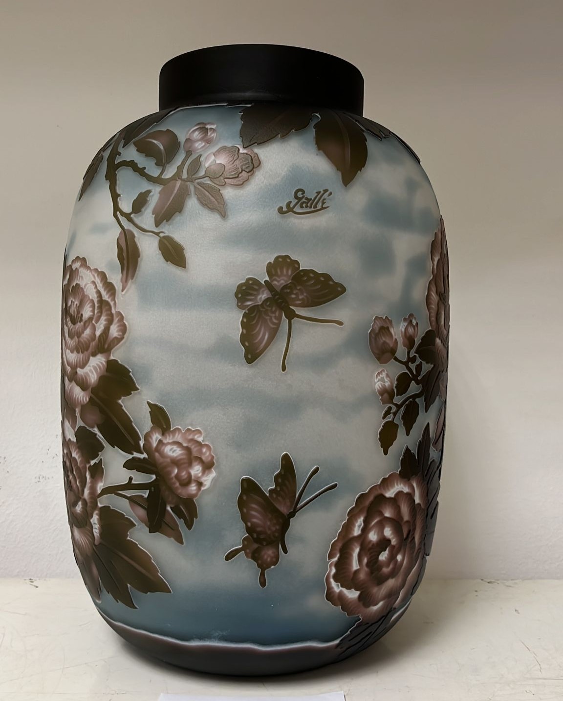 Cameo glass vase by Emile Gallé Butterflies and roses 38cm