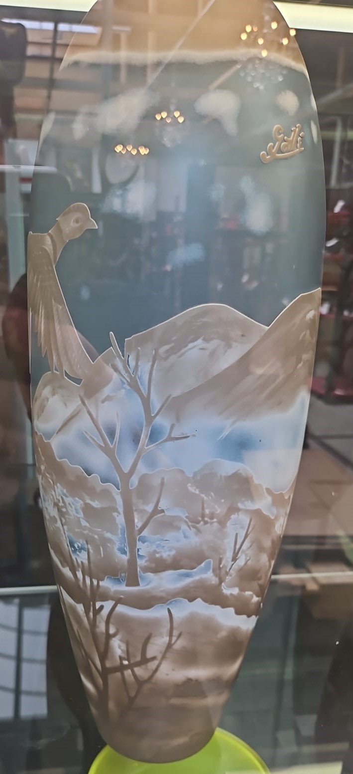 Cameo glass vase by Emile Gallé winter landscape 46cm