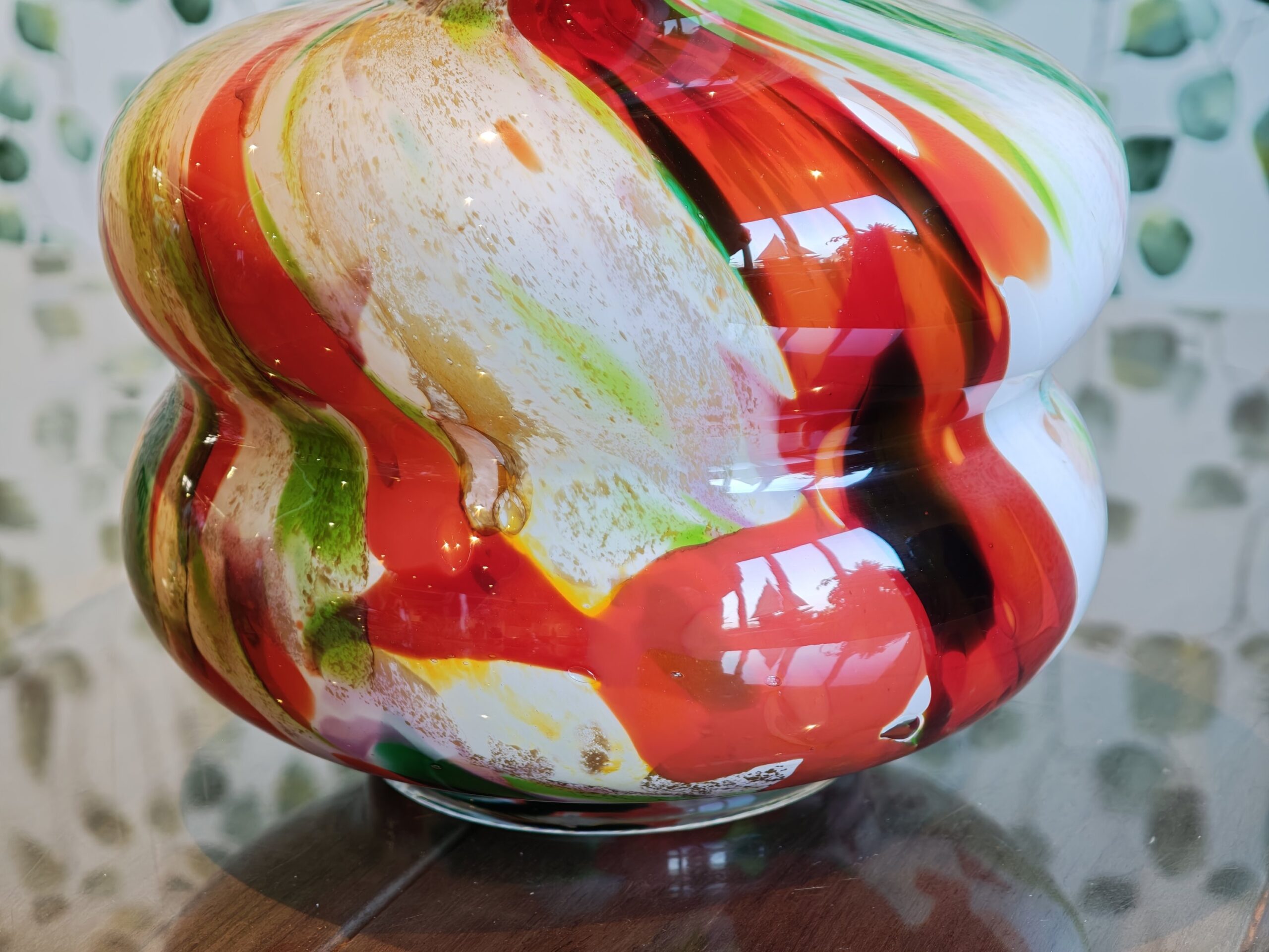 The Fidrio vase Sienna ‘mixed colors’ is a mouth-blown vase 25 cm high with a playful, wavy shape. The vibrant mix of red and green colors on a light background makes this object a cheerful eye-catcher in your interior. Thanks to its 5cm opening, this model is ideal for presenting a delicate bouquet or a few single flowers.