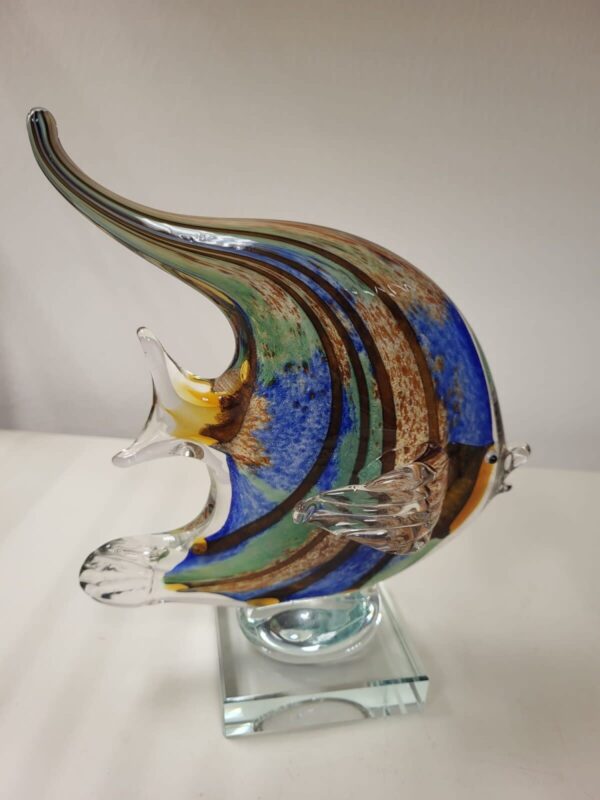 This unique glass decorative object in the shape of a large fish is a wonderful piece of decoration for your home or to give as a gift. This glass object of a fish made of glass is made in the same way as the centuries-old and famous Murano glass from Italy. Authentically mouth-blown from different colors of glass fused together.