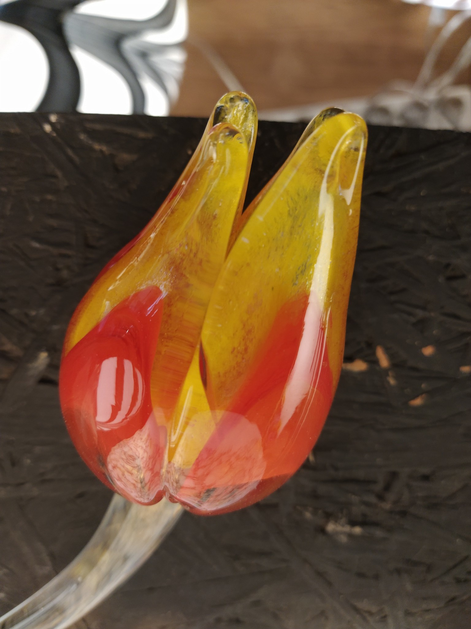 This unique glass tulip is a splendid piece of decoration for your home or office. The quality is very good with this tulip, as it was made by an artisan glassblower from the famous Bohemia, the European glass region par excellence.