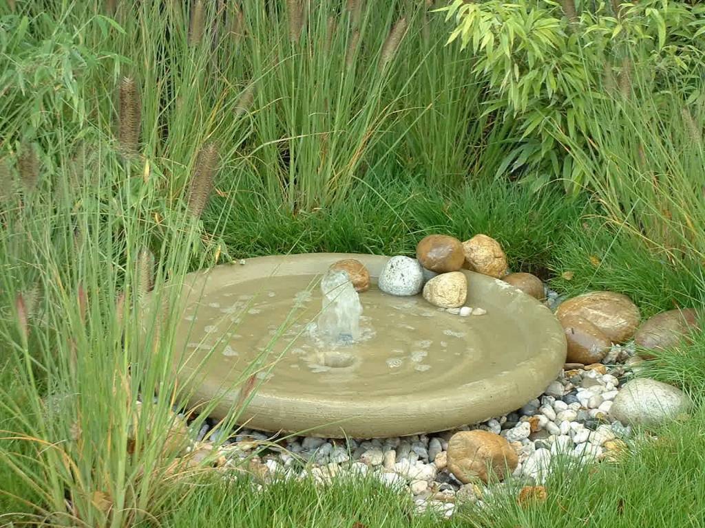 The water bubbles up and runs back into the water tank through the hole in the bowl. Bowl gives a fun water play in the garden, your birds are also raving about it!!! You can order this bowl separately or as a complete set , with water basin, pump, hose and control valve.