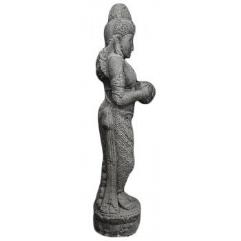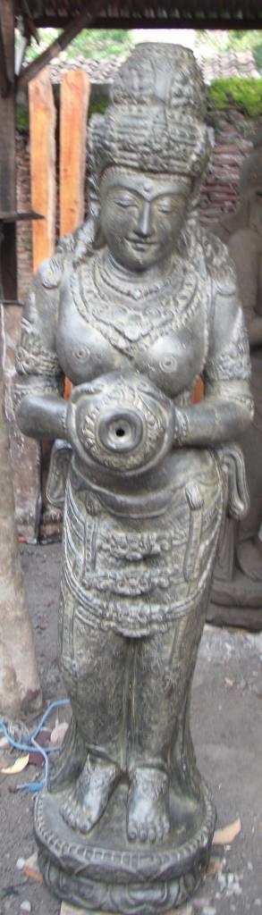 Give you garden the finishing touch with this black/gray oriental statue of 175cm This dewi gentong is beautifully finished, is of cast stone, water comes from the pitcher. For further items you may need, please see the supplies subgroup. This Dewi Fountain, known as Dewi Gangga, this God represents irrigating the land (rice fields). Of course, this sculpture can also be placed as a sculpture without a water connection!