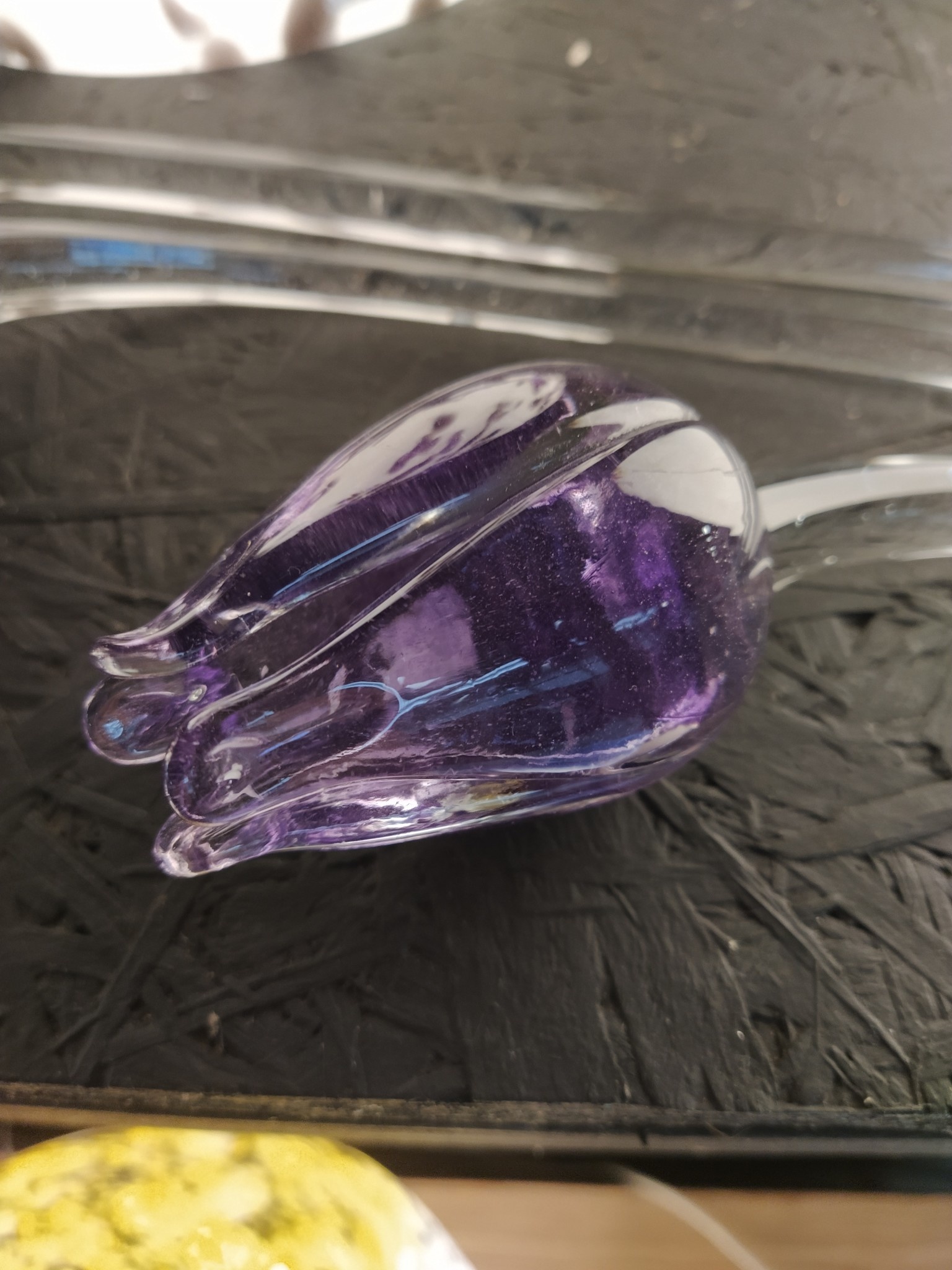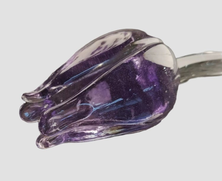 This unique glass tulip is a splendid piece of decoration for your home or office. The quality is very good with this tulip, as it was made by an artisan glassblower from the famous Bohemia, the European glass region par excellence.