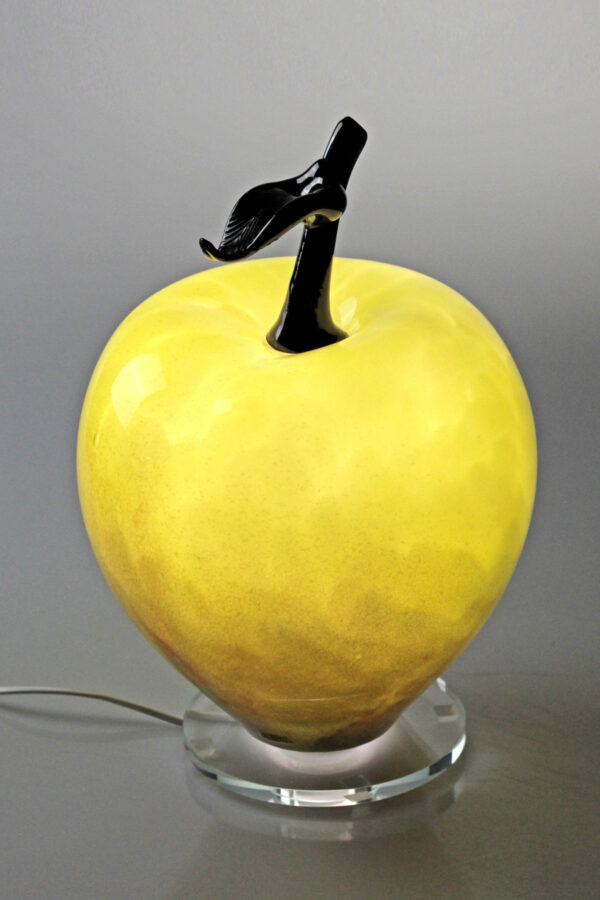 This apple-shaped lamp made of very clear crystal glass is made the old-fashioned way, i.e. mouth-blown. The colors used in the lamp are amazingly beautiful and bright, exuding a very warm and friendly atmosphere.