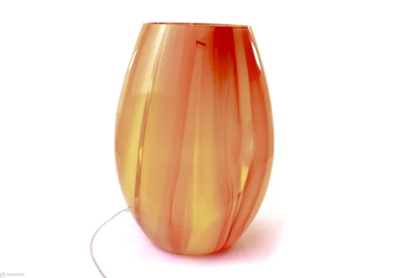 Bring a touch of Italian flair to your interior with the beautiful ‘Murano Arancia’ glass lamp. This slim model, with a height of approximately 48cm, is a unique art object from the Loranto brand. The lamp is mouth-blown from thick Bohemian glass and inspired by the famous Murano style. The name ‘Arancia’ refers to the warm orange tones incorporated into the glass, which creates a sunny and atmospheric look as soon as you turn on the lights.