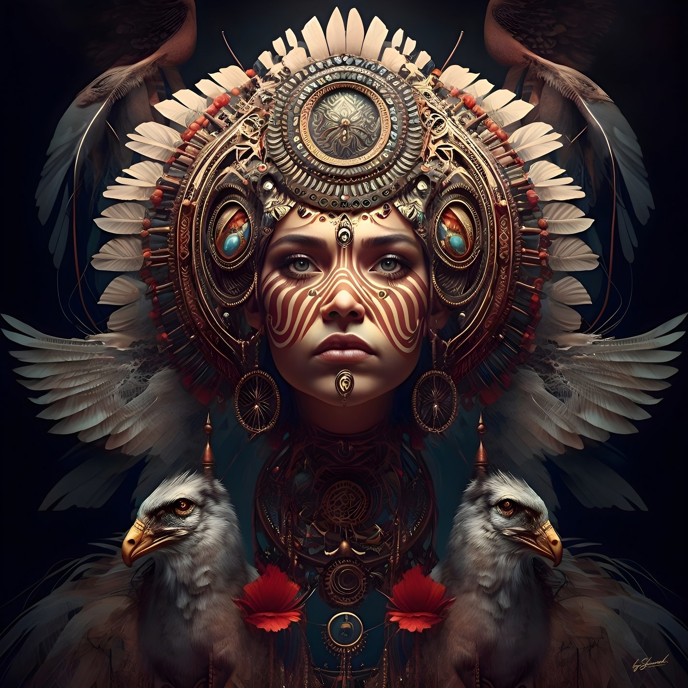 Glass painting Fantasy woman 100x100cm.
