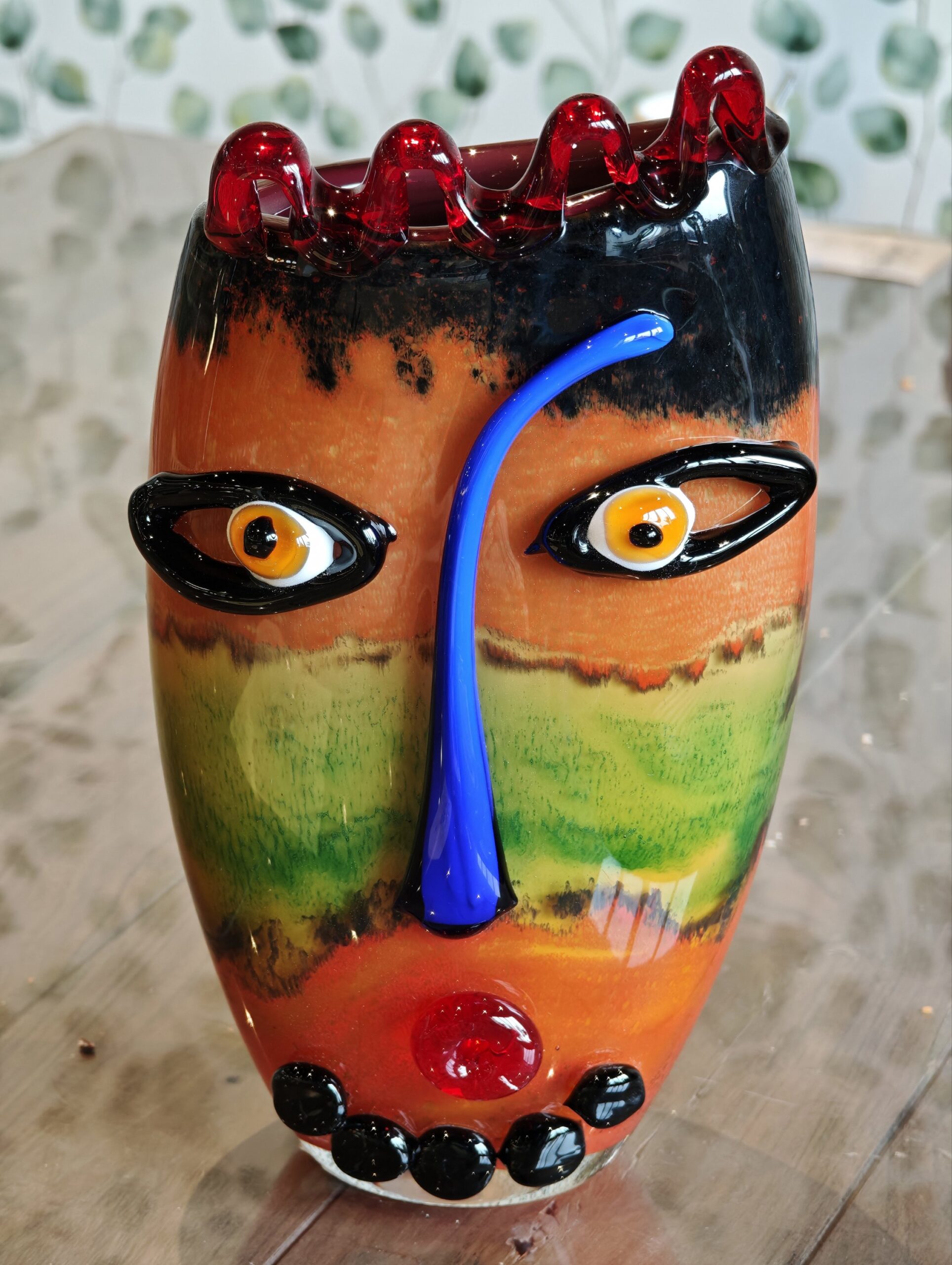 Vase glass Face with crooked nose 35cm