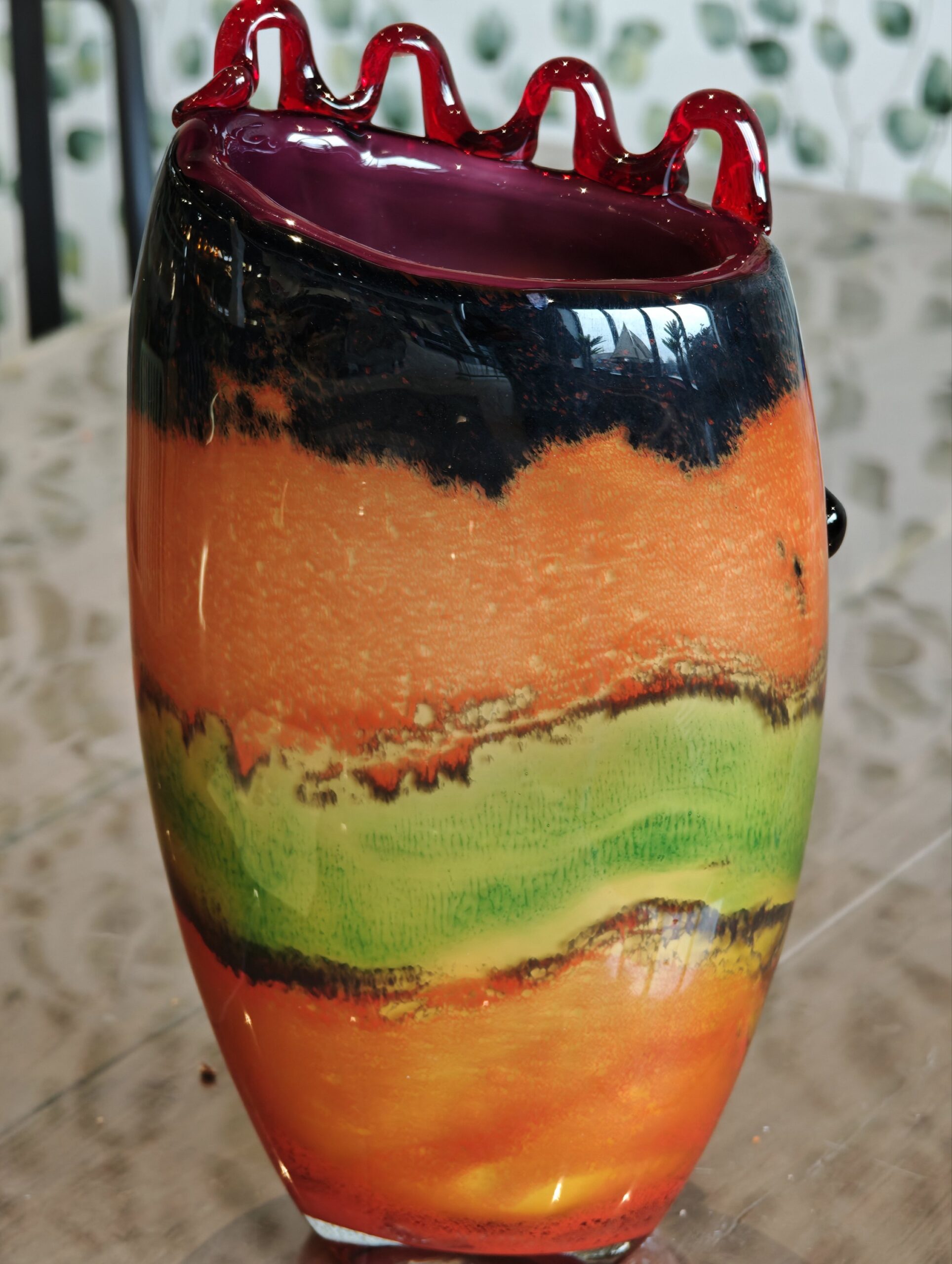 Because this piece of glass decoration is handcrafted, each piece of this series is unique in appearance and color, so this glass vase may differ from the photo. Imperfections may occur on handmade glass products; air bubbles, streaks, etc. This is normal; it cannot be complained about.