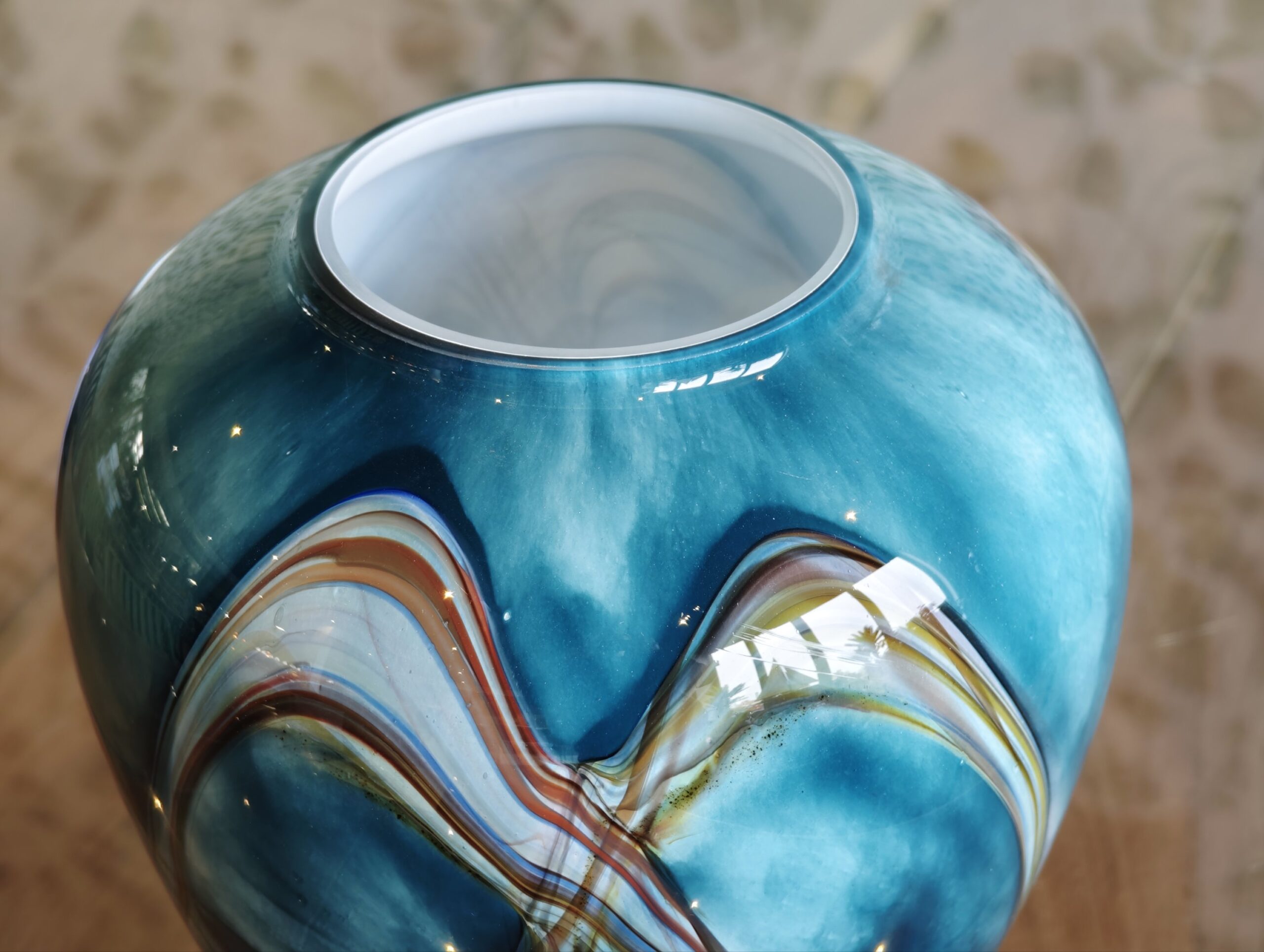 What makes this vase truly special is that it is completely handcrafted. As a result, you bring a unique work of art into your home; the specific color pattern and flowing lines are not exactly the same on any one piece. The light plays beautifully with the glass and the different layers of color, giving the vase a different look from every angle. An exclusive eye-catcher from Eliassen that makes a powerful statement in your interior both with a modest bouquet and solo.