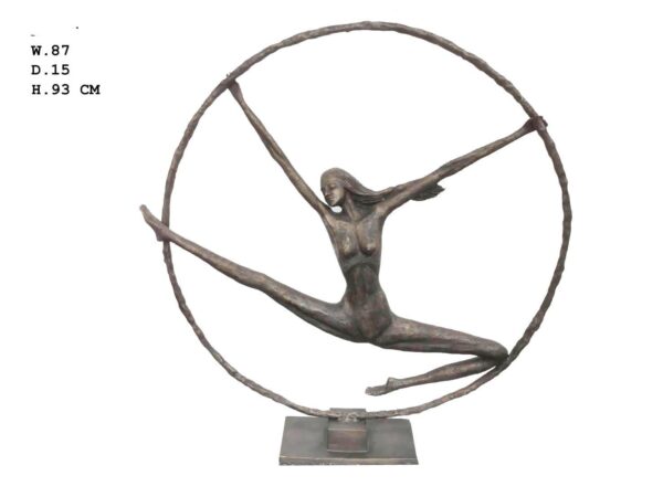 Beautifully detailed statue of a jumping woman in a circle, on a foot, made of 100% high-quality bronze with a minimum copper content of 75%, which guarantees a very long life and no unsightly stains. A beautiful and durable decoration object for home, business or garden, but also for a wonderful gift.