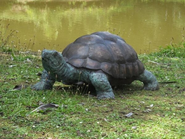 Beautiful statue of a squirming giant turtle made of high quality bronze with a minimum copper content of 75% ensuring a very long life.