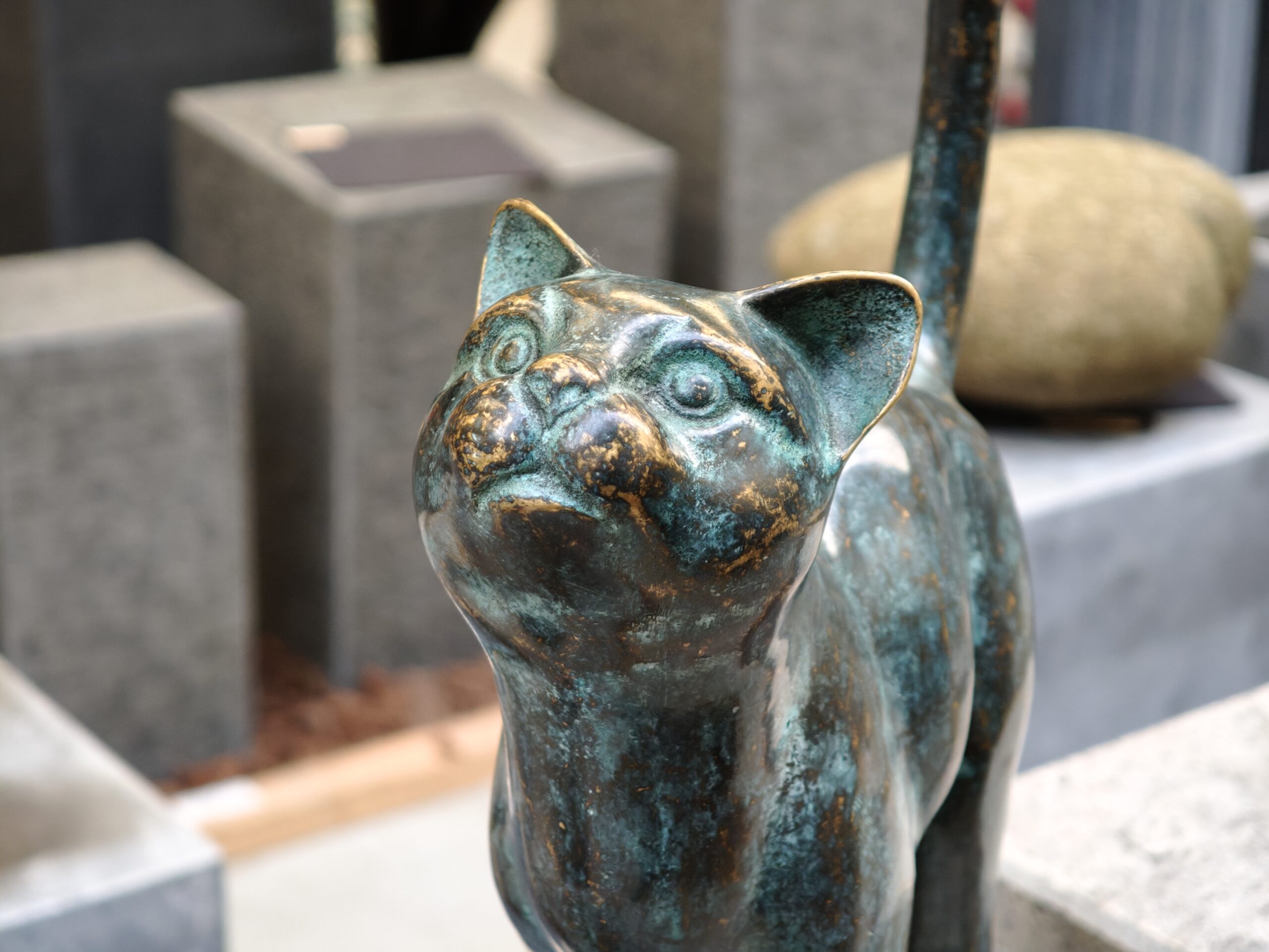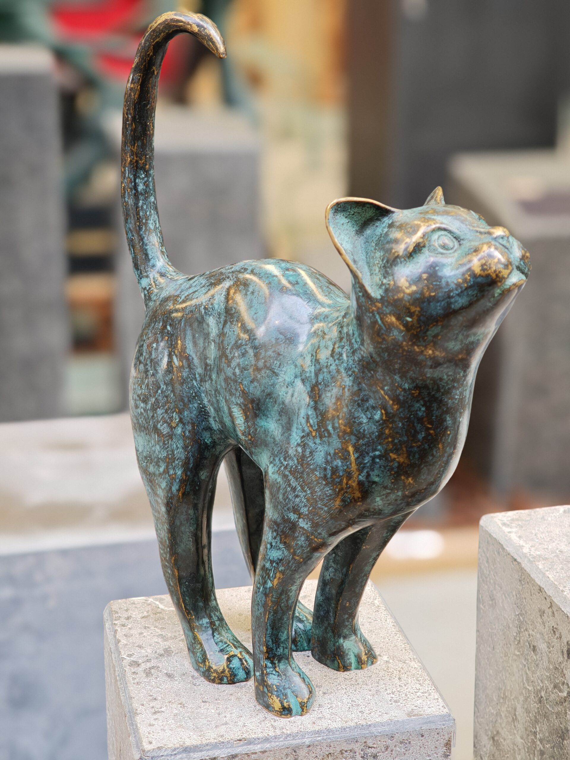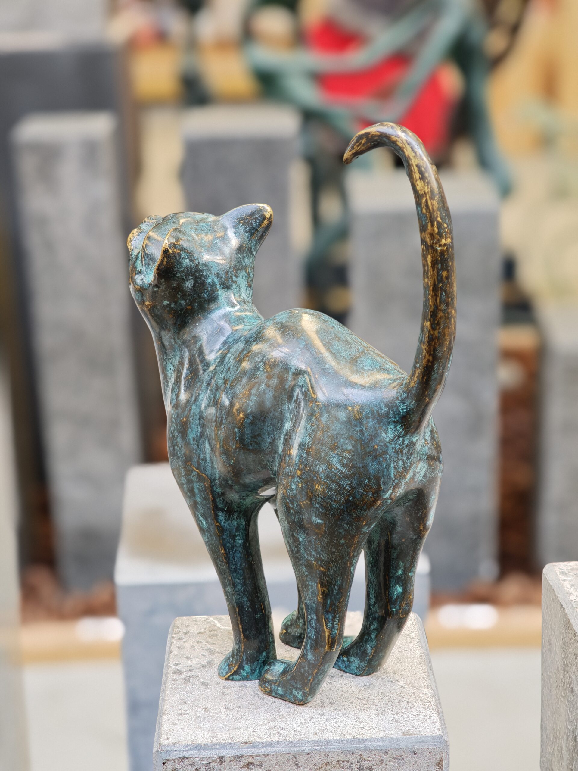 Statue cat tail up bronze