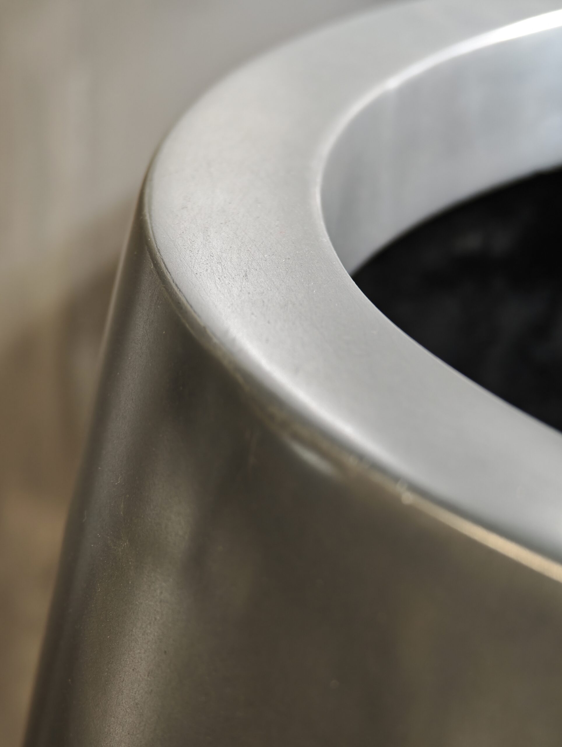 Made of the rock-solid fiberglass, very precisely sprayed with a silk-gloss aluminum color lacquer. Fiberglass is made of fiberglass mats mixed with polyester-epoxy resin. This model is a super beautiful and exclusive piece of decoration in any interior or workplace.