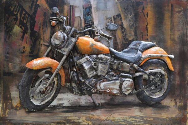This piece of wall decoration with the image of a harley davidson, has the size 120x80cm.
