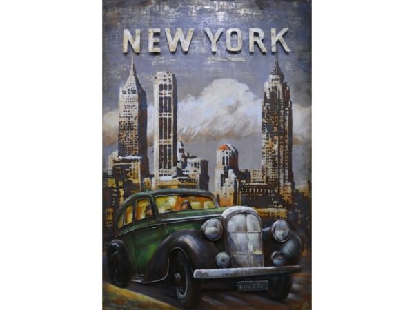 Metal painting, with the image of a view of New York, sublimely made of separate parts of metal, all welded together by hand, for an optimal 3d effect. A beautiful piece of wall decoration for your home, outside under a canopy or in your business. Colors and overall appearance may vary from the photo as this entire item is made by human hands.