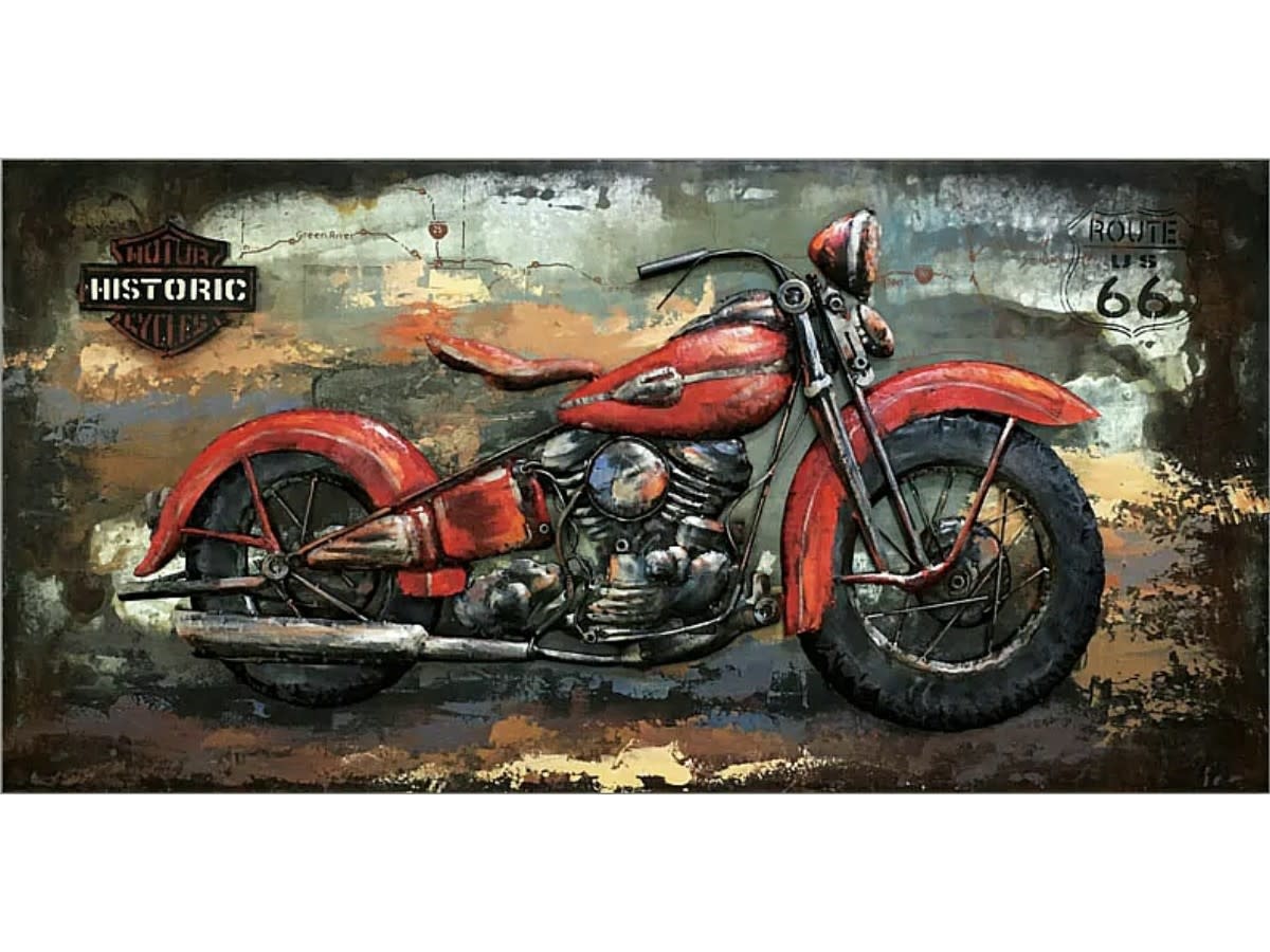 Metal 3d painting Red motorcycle Historic 70x140cm.