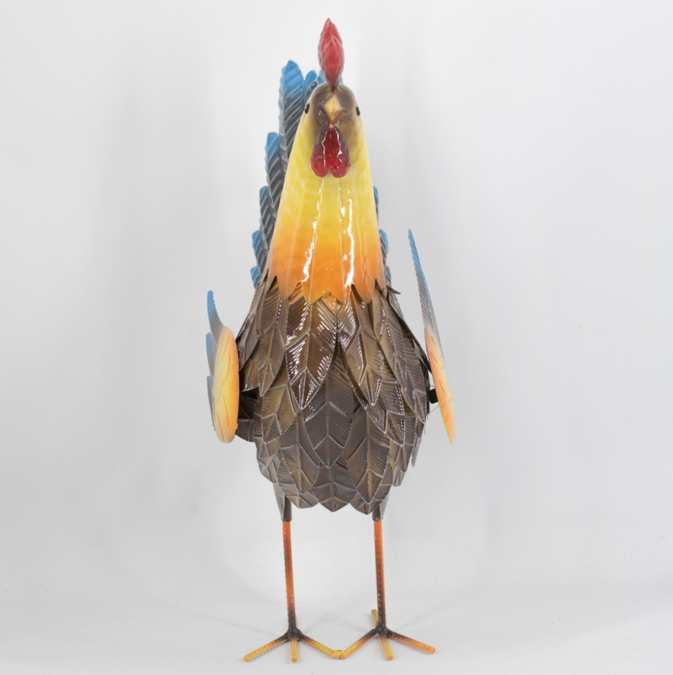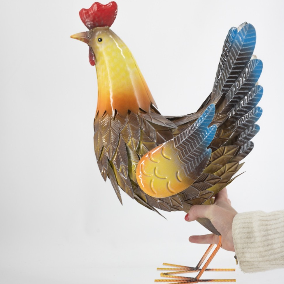 This metal rooster is a cheerful decoration in the home or garden or very nice to give as a gift.