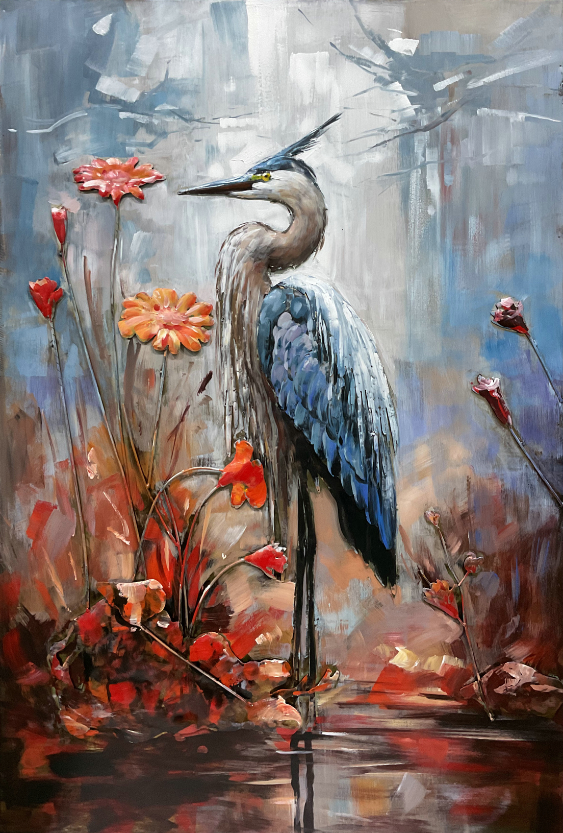 Metal painting, with the image of Provence, sublimely made of separate parts of metal, all welded together by hand, for an optimal 3d effect. A beautiful piece of wall decoration for your home, outside under a canopy, or in your business. Colors and overall appearance may vary from the photo as this entire item is made by human hands.