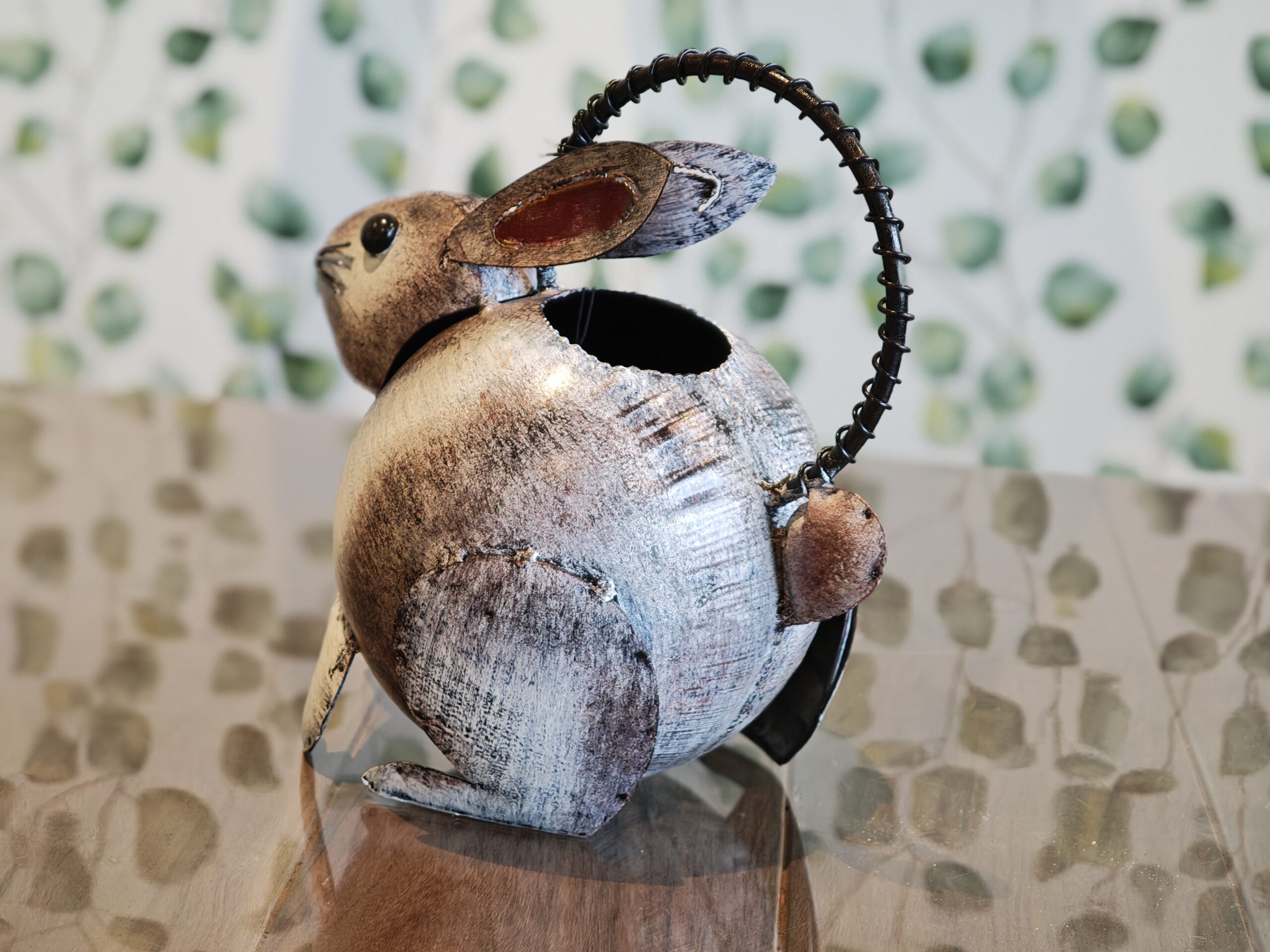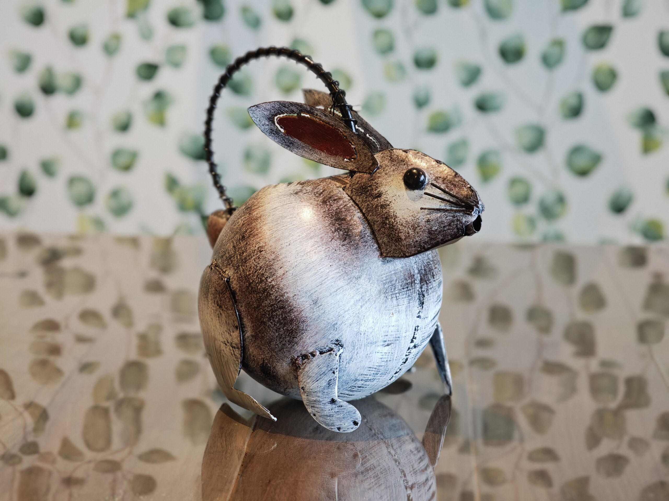 Superbly finished metal figure of a rabbit with a watering can function. An ornament in the home or garden and beautiful to gift. Completely handmade and painted.