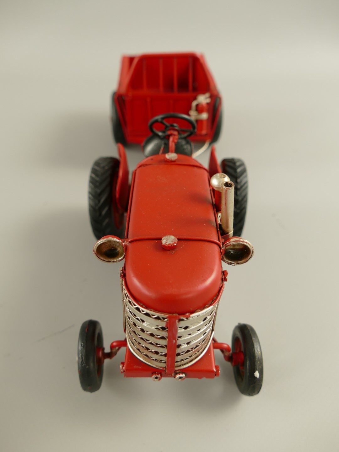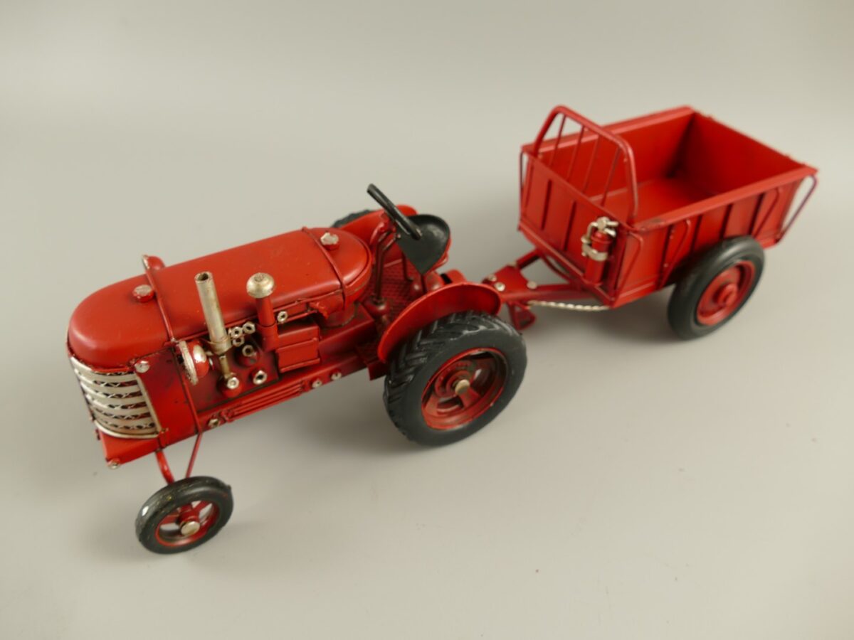 Miniature model red tractor with trailer 32cm